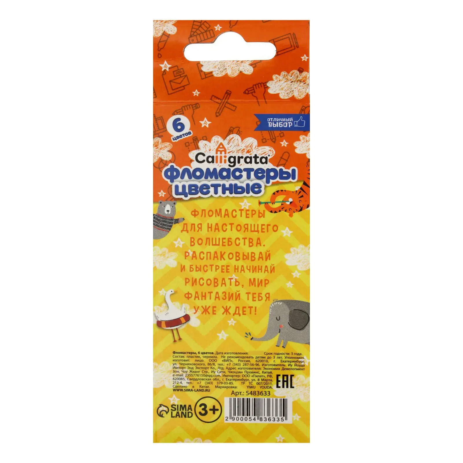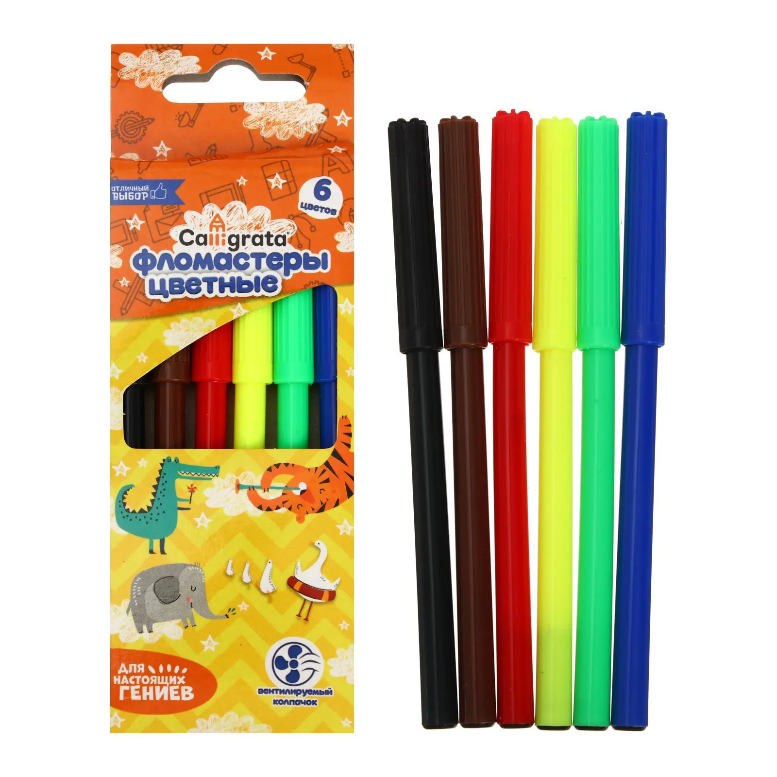 Набор фломастеров содержит 6 ярких и насыщенных цветов.