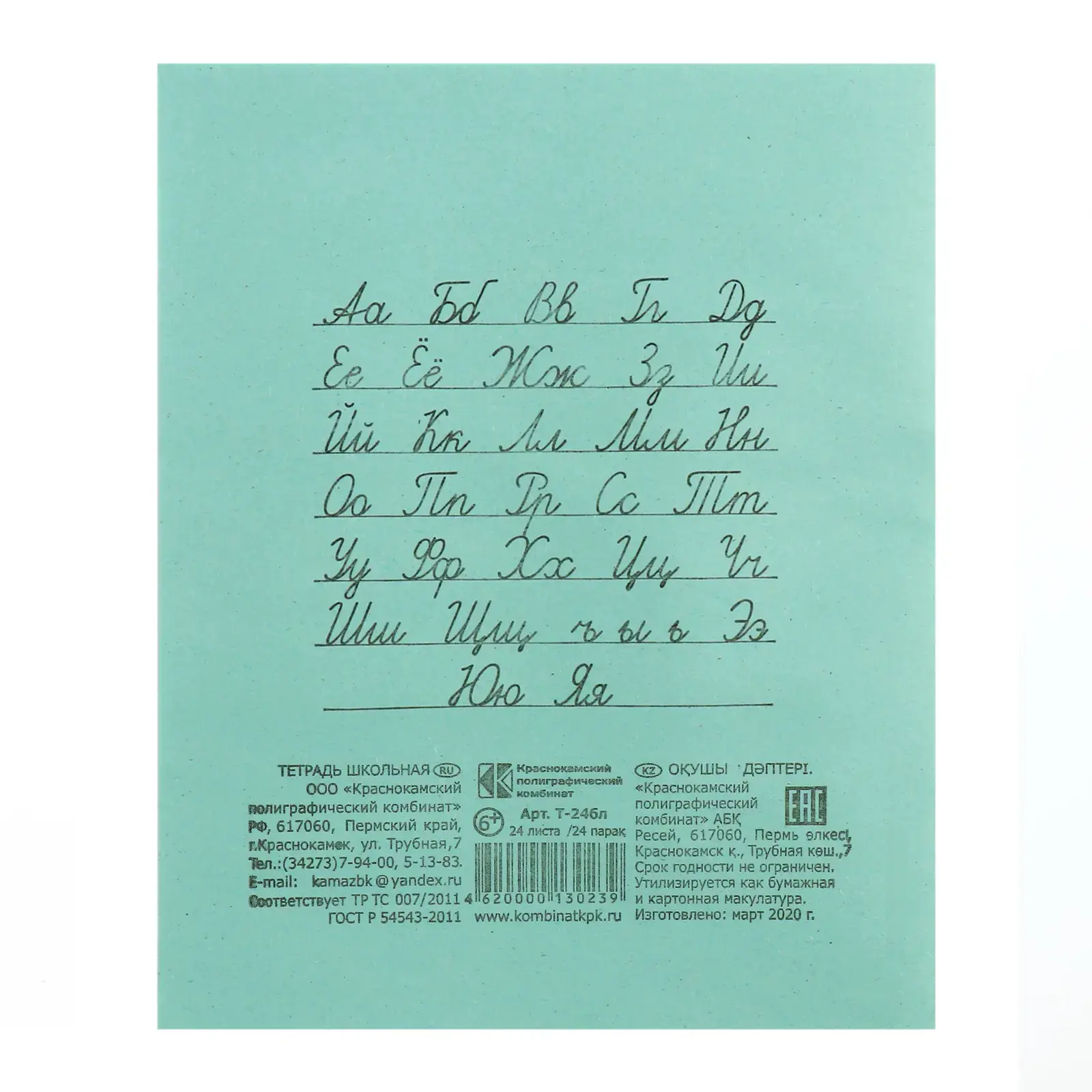 Тетрадь 24 листов в линейку «Зелёная обложка». Скоба. Белизна 93%, (10 шт.)