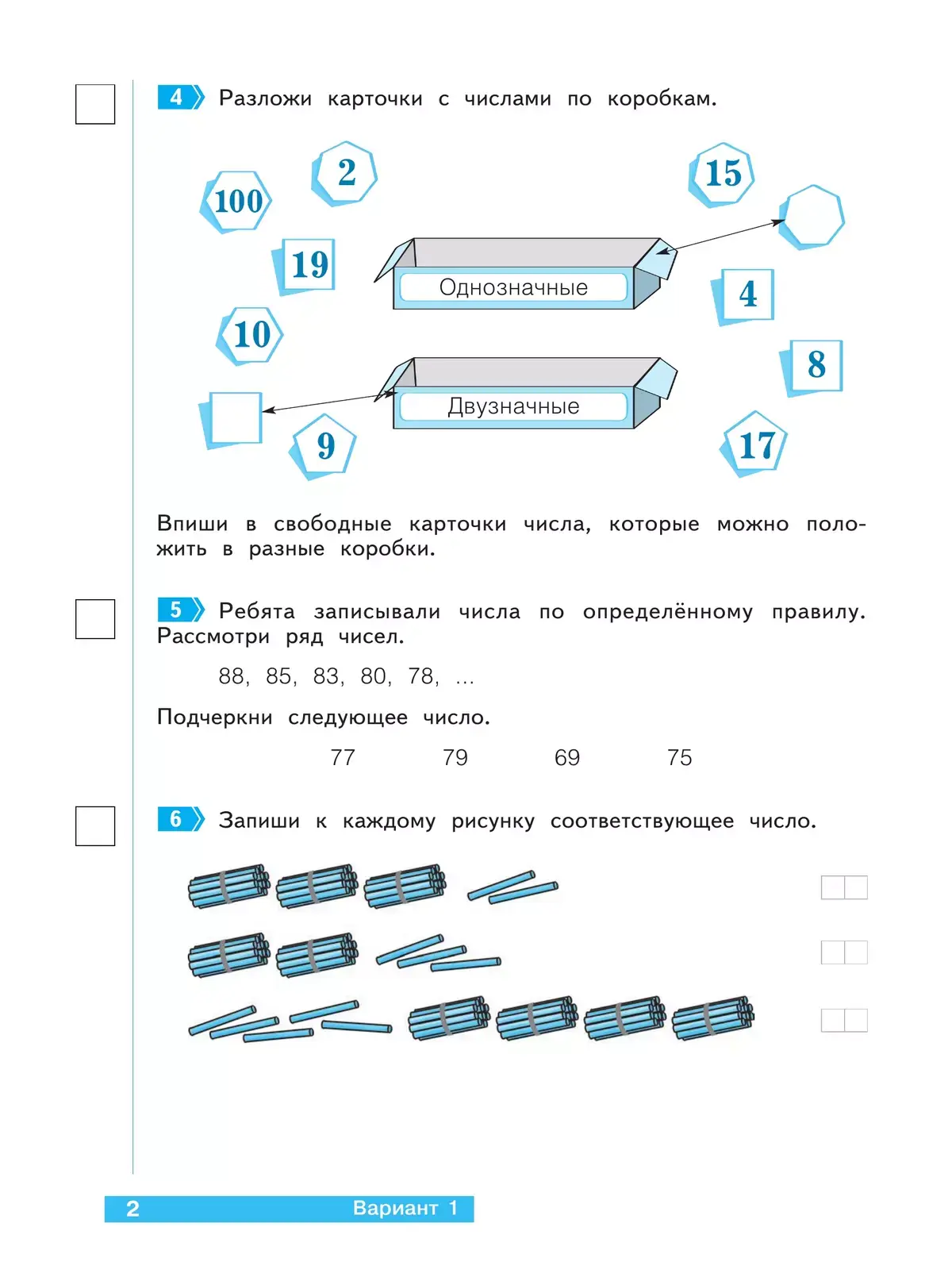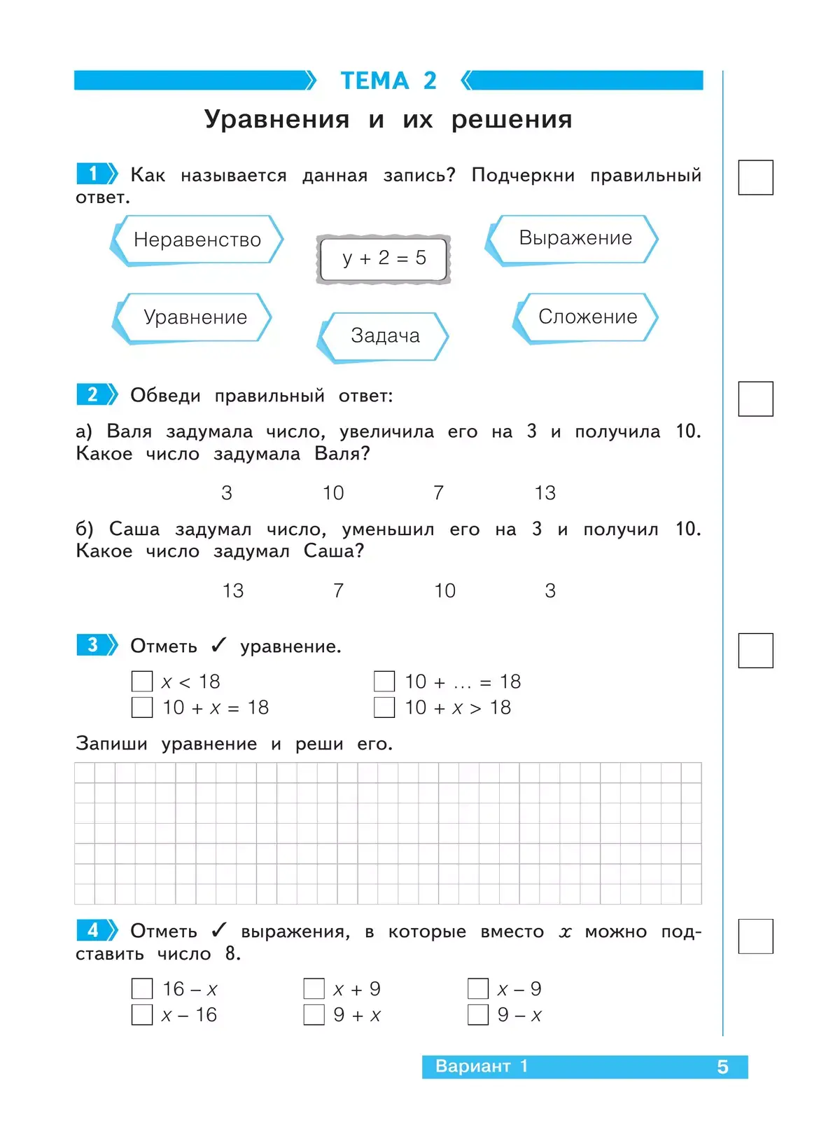 Тетрадь содержит проверочные работы для организации тематического контроля на уроках математики в 1-м полугодии 2 класса. Предложенные задания позволяют определить, насколько успешно у ребенка формируются предметные умения. В каждой тетради представлено два варианта работ. Данная тетрадь может использоваться с любыми УМК.