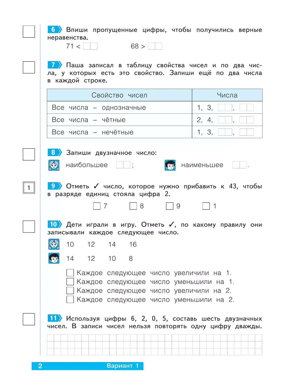 Тетрадь содержит проверочные работы для организации тематического контроля на уроках математики во 2-м полугодии 2 класса. Предложенные задания позволяют определить, насколько успешно у ребенка формируются предметные умения. В каждой тетради представлено два варианта работ. Данная тетрадь может использоваться с любыми УМК.