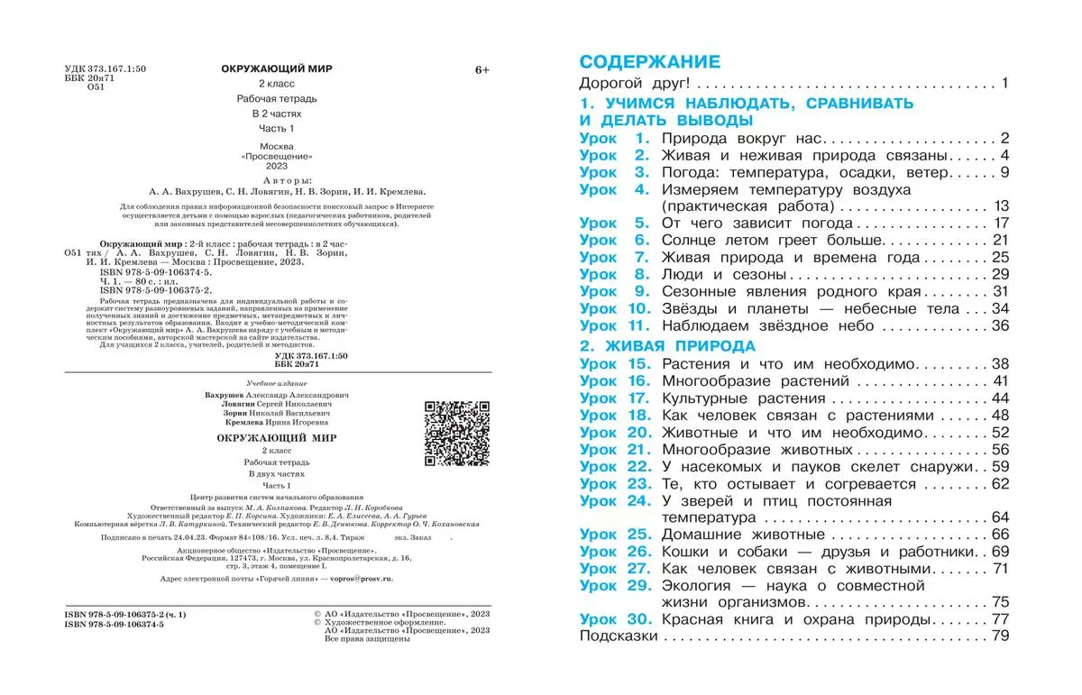 Рабочая тетрадь предназначена для индивидуальной работы и содержит систему разноуровневых заданий, направленных на применение полученных знаний и достижение предметных, метапредметных и личностных результатов образования. Входит в учебно-методический комплект «Окружающий мир» А. А. Вахрушева наряду с учебным и методическим пособиями.