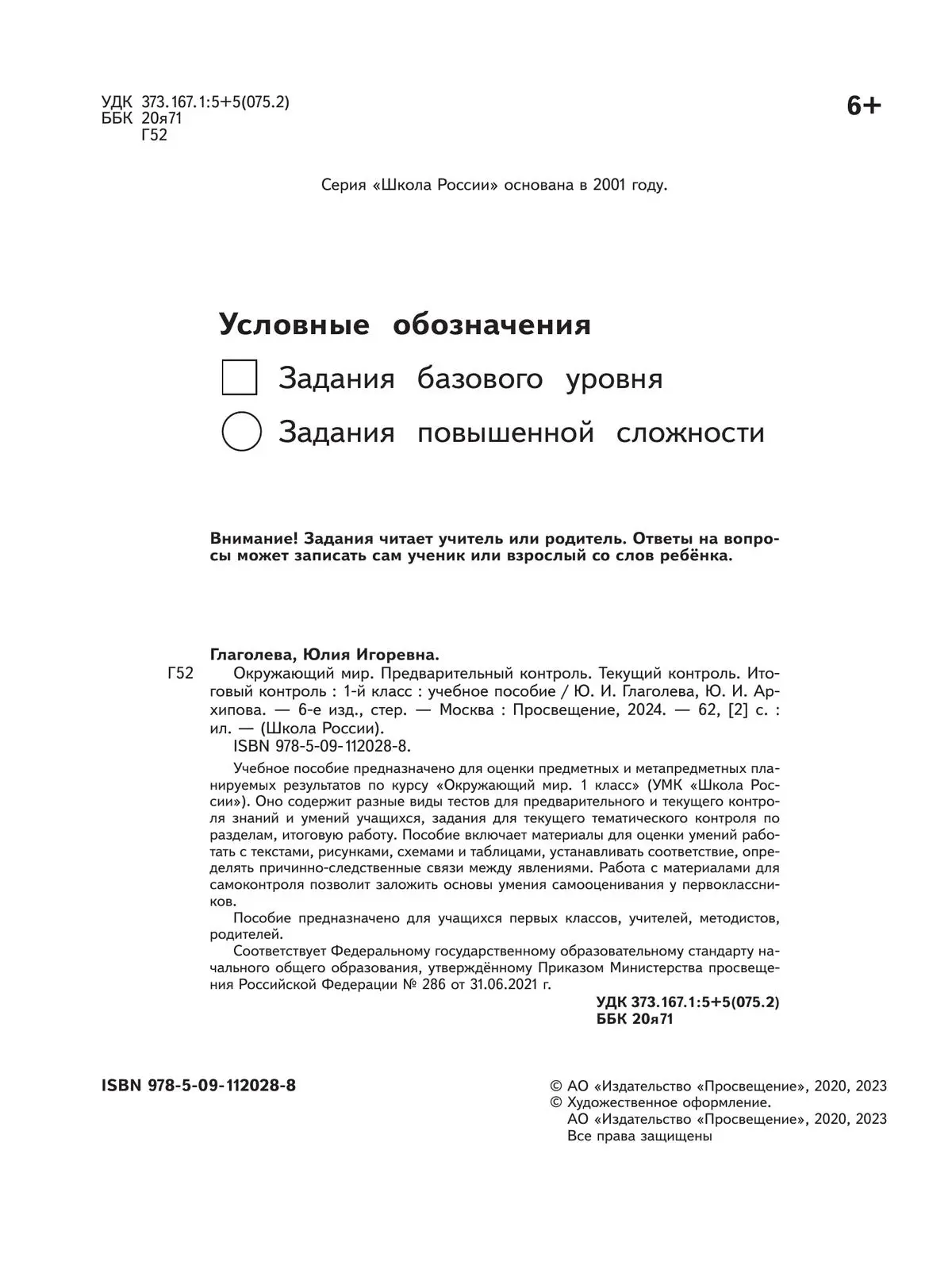 Учебное пособие предназначено для оценки предметных и метапредметных планируемых результатов по курсу «Окружающий мир. 1 класс» (УМК «Школа России»).
