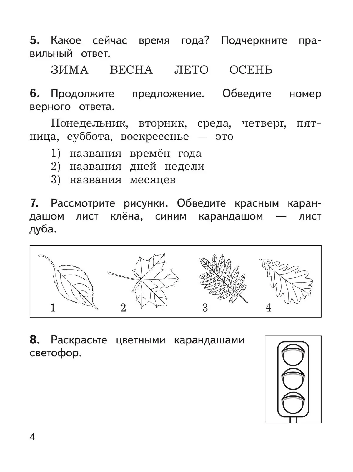 Пособие включает материалы для оценки умений работать с текстами, рисунками, схемами и таблицами, устанавливать соответствие, определять причинно-следственные связи между явлениями. Работа с материалами для самоконтроля позволит заложить основы умения самооценивания у первоклассников.