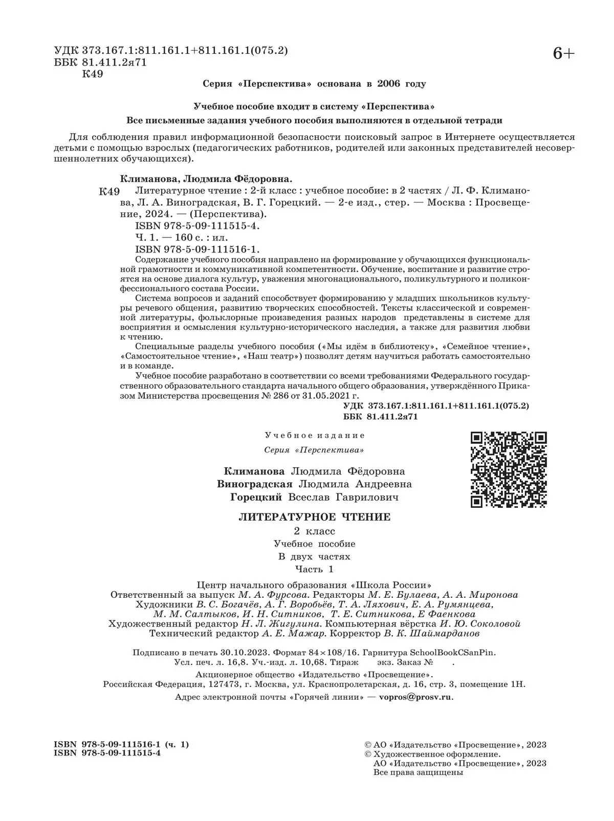Литературное чтение. 2 класс. Учебное пособие. Часть 1. Перспектива. ФГОС Новый