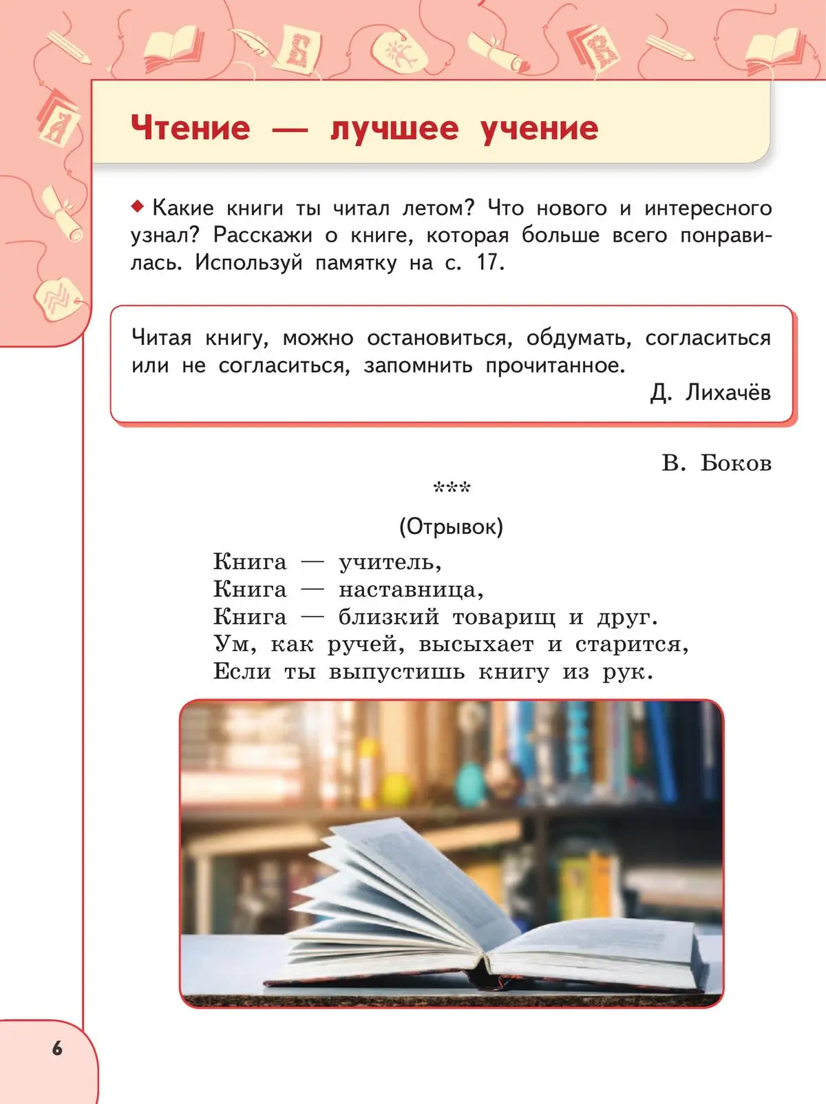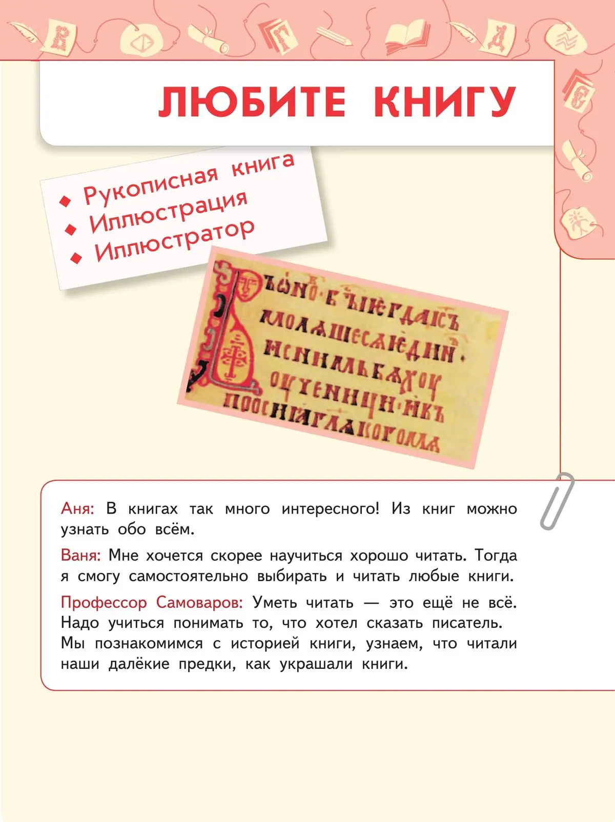 Специальные разделы учебного пособия («Мы идём в библиотеку», «Семейное чтение», «Самостоятельное чтение», «Наш театр») позволят детям научиться работать самостоятельно и в команде.