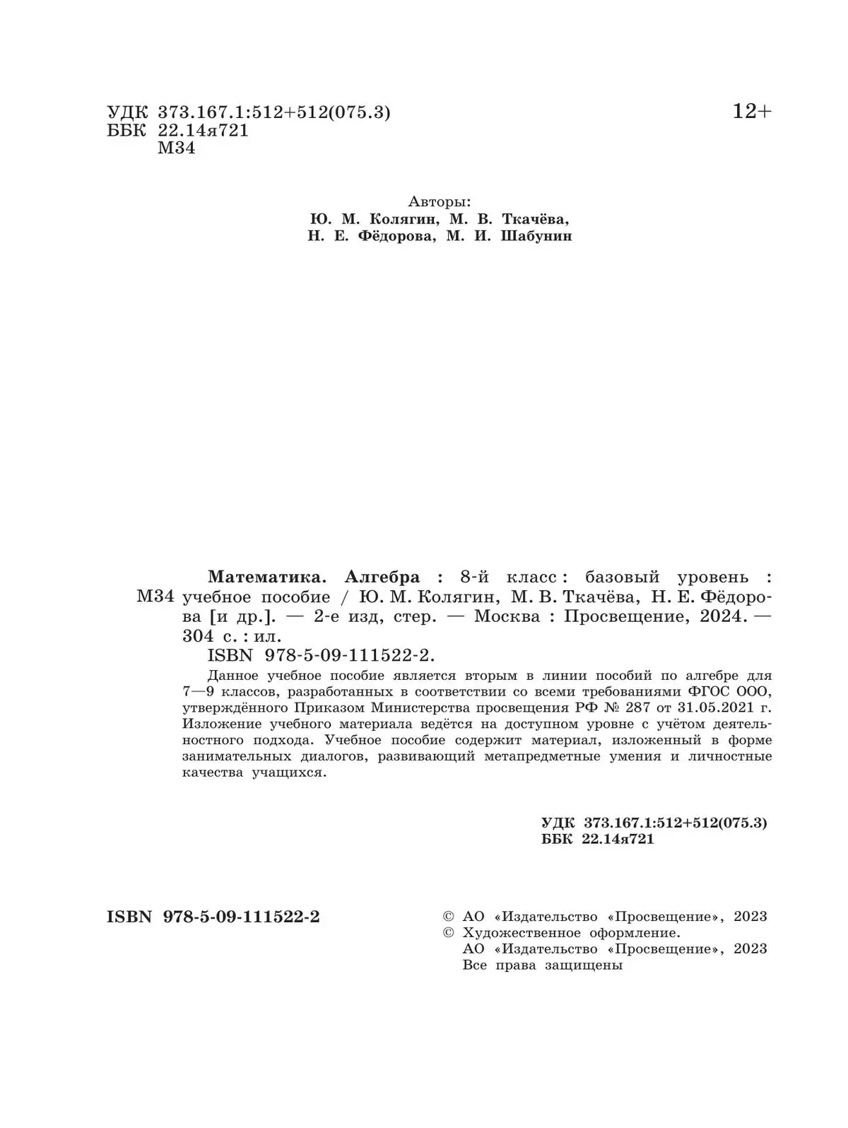 Данное учебное пособие является вторым в линии учебных пособий по алгебре для 7—9 классов, подготовленных в соответствии со всеми требованиями Федерального государственного образовательного стандарта основного общего образования.