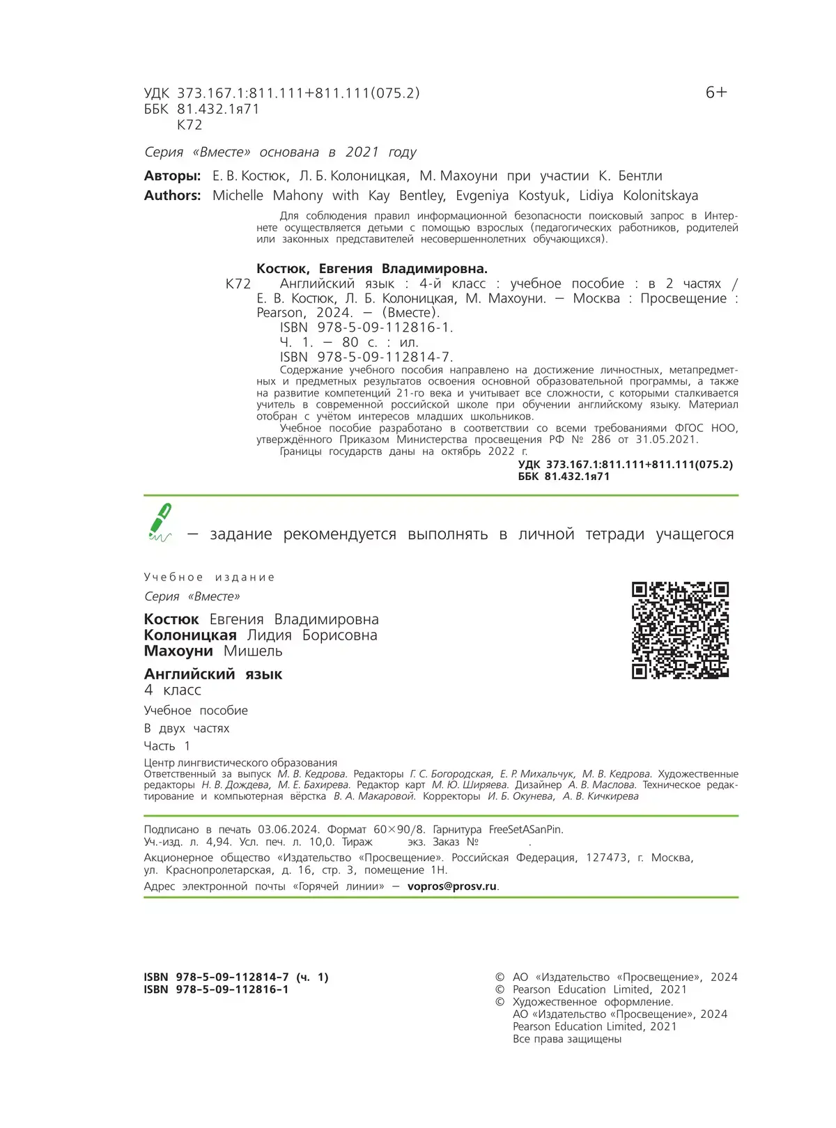 Английский язык. 4 класс.Team Up! (Вместе). Учебное пособие. Часть 1. ФГОС Новый