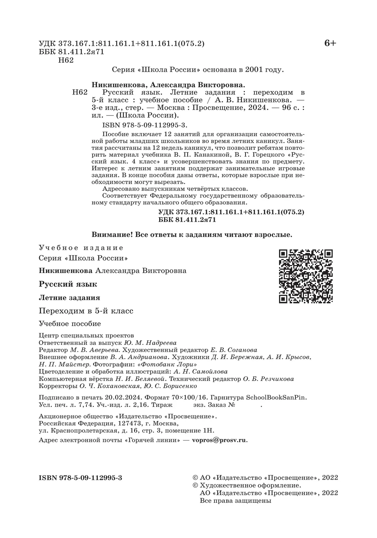 Занятия рассчитаны на 12 недель каникул, что позволит ребятам постепенно повторить материал учебника В. П. Канакиной, В. Г. Горецкого «Русский язык. 4 класс» и усовершенствовать знания по предмету.