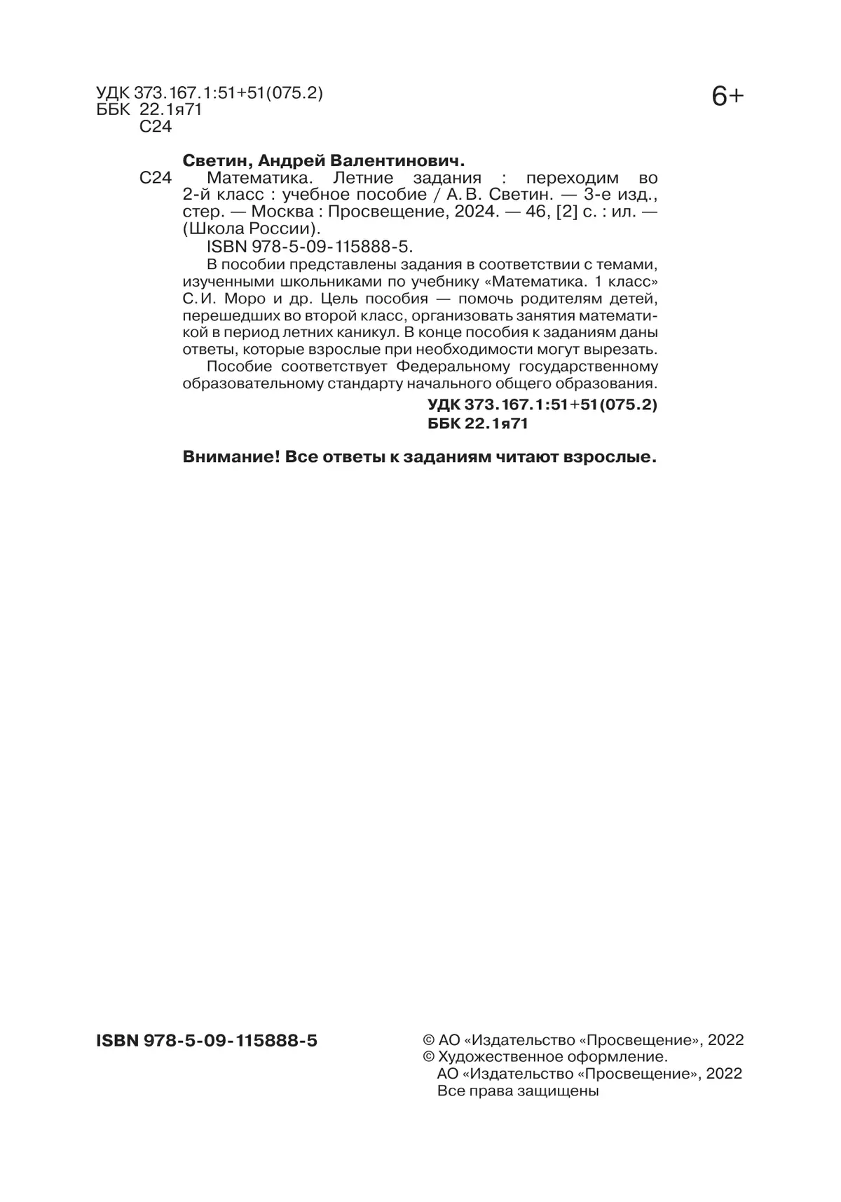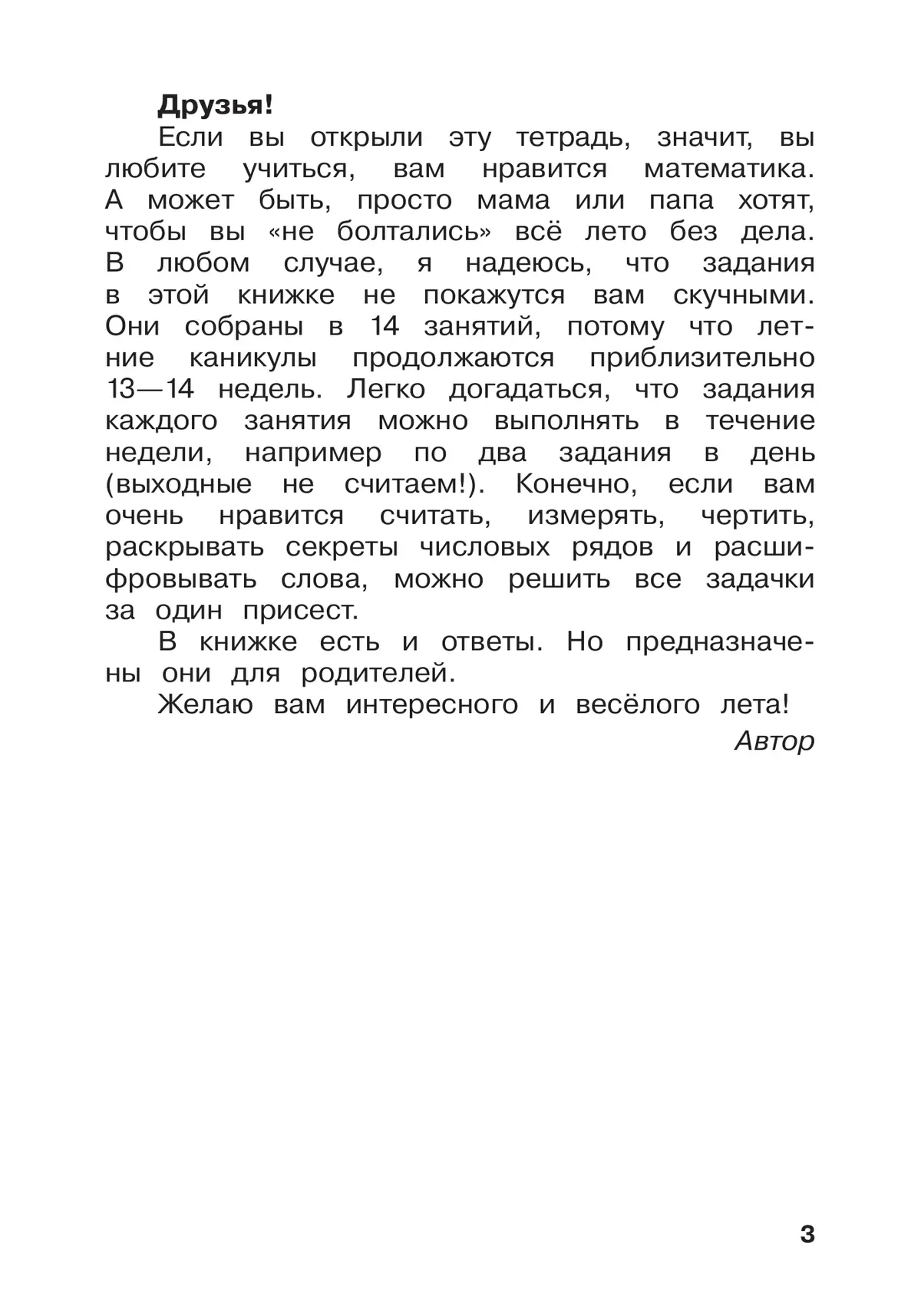 Цель пособия — помочь родителям детей, перешедших во второй класс, организовать занятия математикой в период летних каникул.