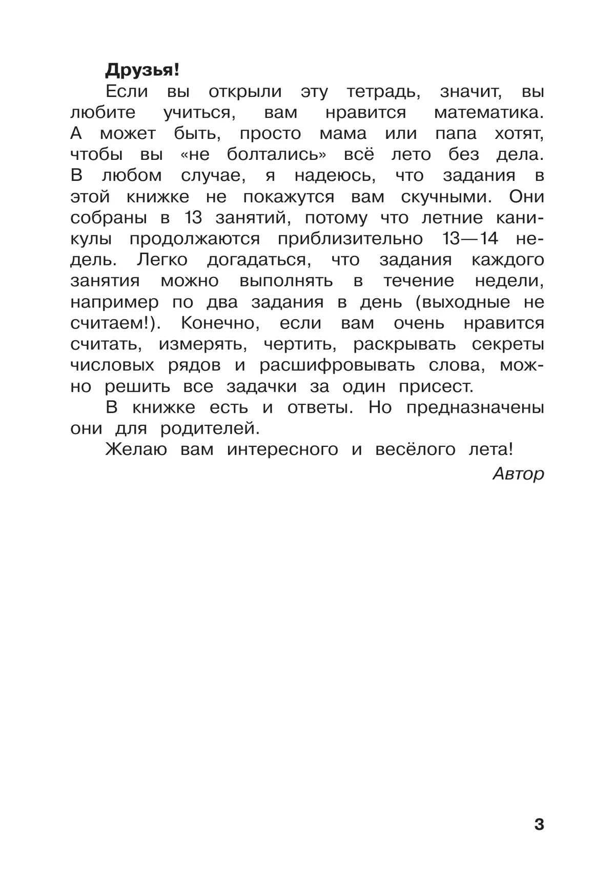 Цель пособия — помочь родителям детей, перешедших в третий класс, организовать занятия математикой в период летних каникул.