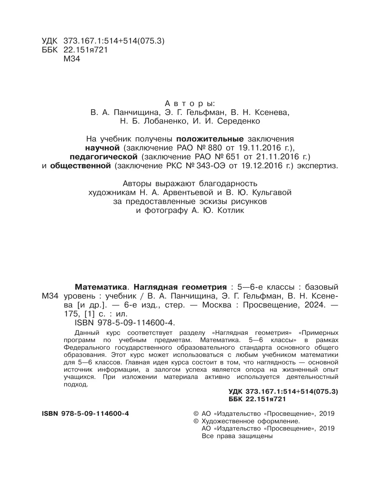 Учебник соответсвует ФГОС 2021 г. Данный курс соответствует разделу «Наглядная геометрия» «Примерных программ по учебным предметам. Математика. 5—6 классы» в рамках Федерального государственного образовательного стандарта основного общего образования.