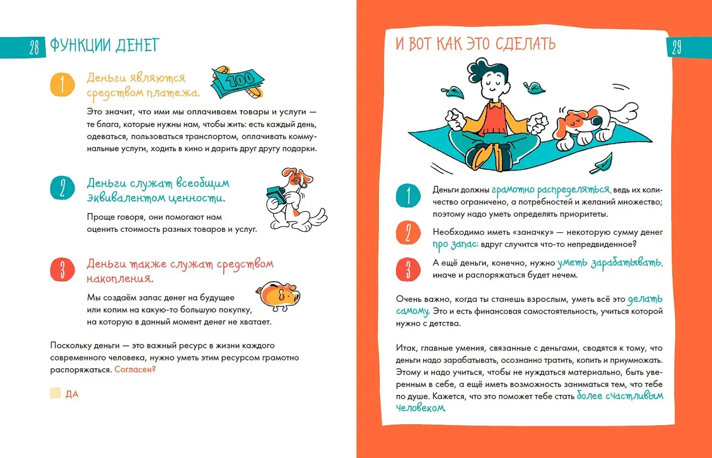 Вы держите в руках уникальный интерактивный блокнот, который поможет детям 8–12 лет прокачать финансовые навыки и сделать первый шаг к финансовому благополучию. Блокнот учитывает особенности возрастной психологии детей, поэтому информация подаётся в игровом формате: заполнение дневниковых записей чередуется с рисованием, ответами на вопросы, интересными фактами и полезной информацией из области экономики. Чтобы ребёнку было легче воспринимать материал, его будут сопровождать два героя: мальчик Ромка и его пёс Платошка.