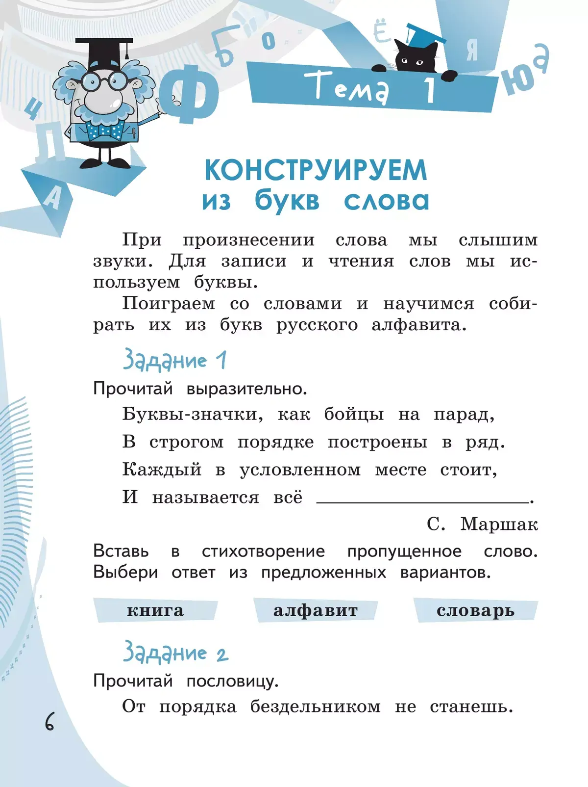 Материалы тетради включают систему увлекательных и интересных упражнений, творческих заданий, развивающих игр для обучения последовательной и комплексной работе со словом, предложением, текстом, для индивидуальной и коллективной работы в школе и для домашних занятий родителей с детьми.