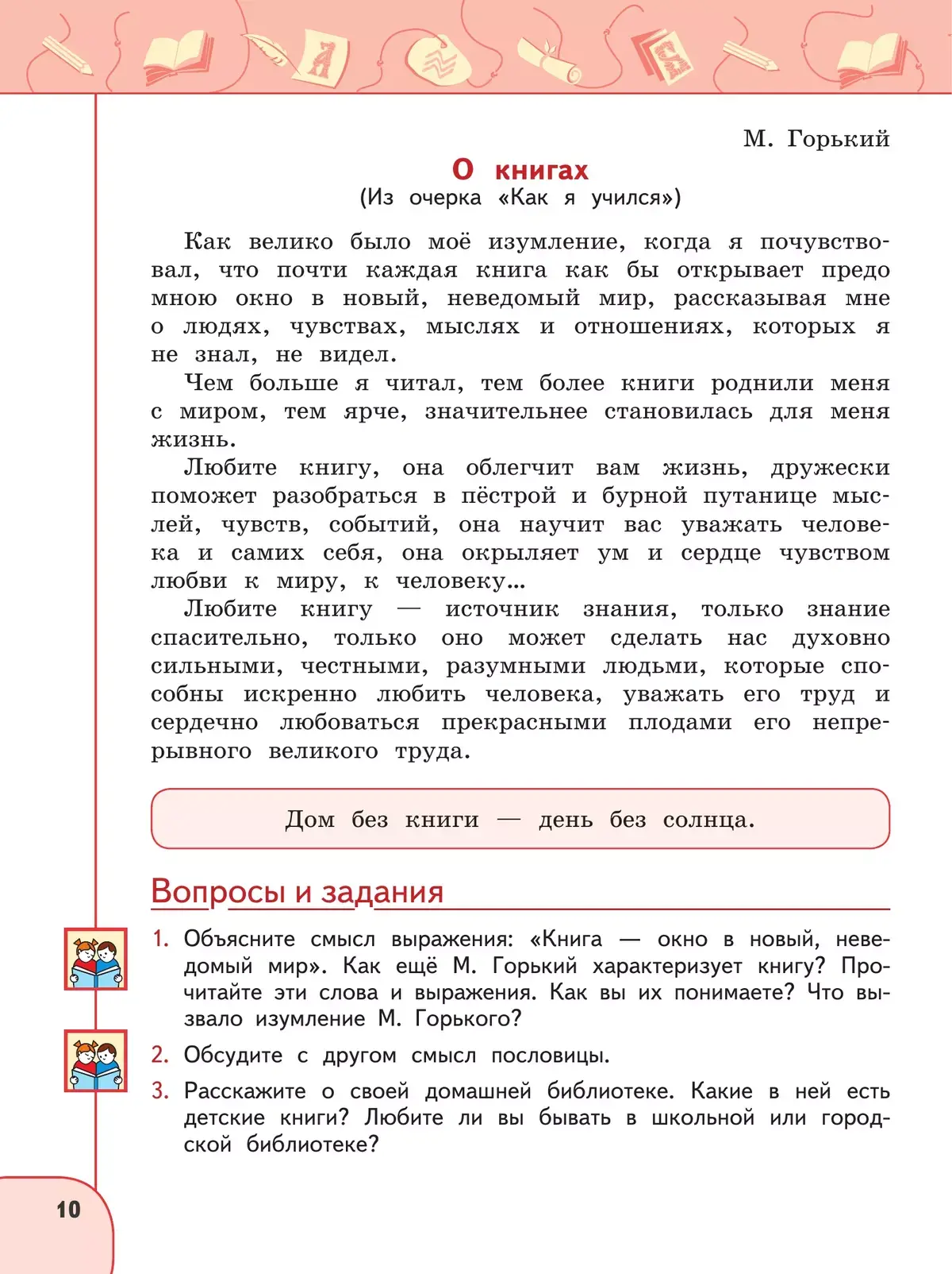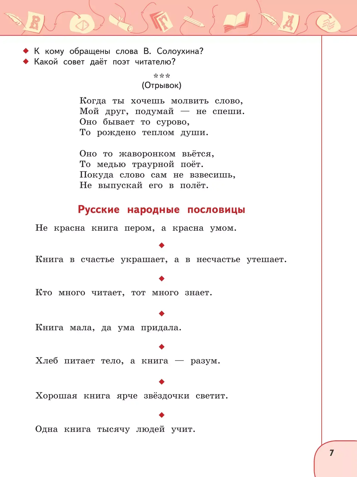 Специальные разделы учебного пособия («Мы идём в библиотеку», «Семейное чтение», «Самостоятельное чтение», «Наш театр») позволят детям научиться работать самостоятельно и в команде.