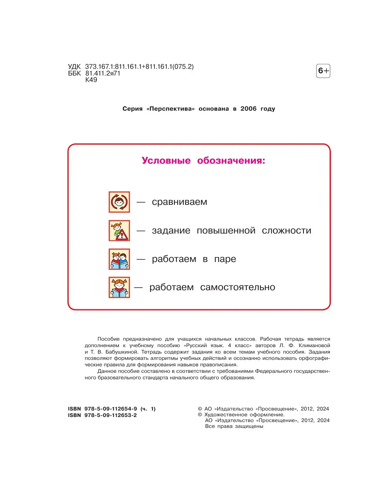 Климанова Л.Ф. Русский язык. 4 класс. Рабочая тетрадь. Часть 1. ФГОС Новый