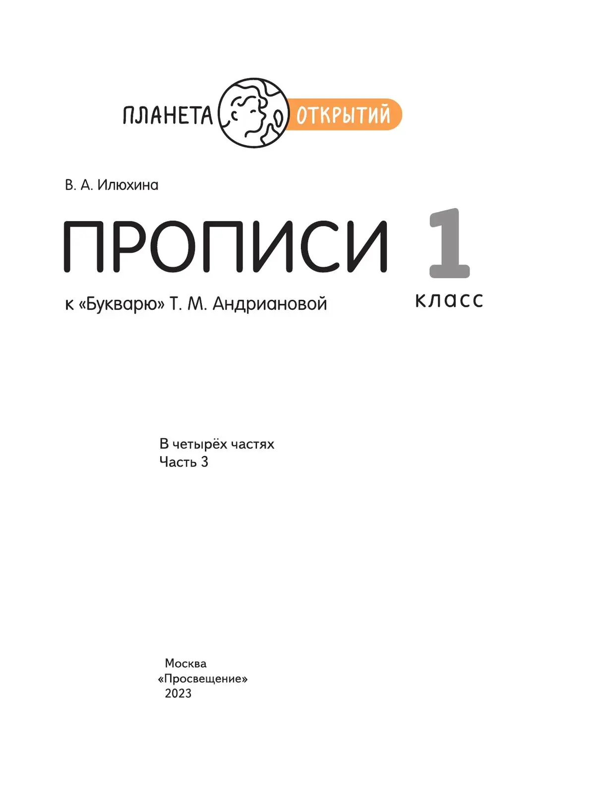 В комплекте с «Букварём» издаются «Прописи» (авт. В. А. Илюхина), рабочая тетрадь (авт. Т. М. Андрианова).