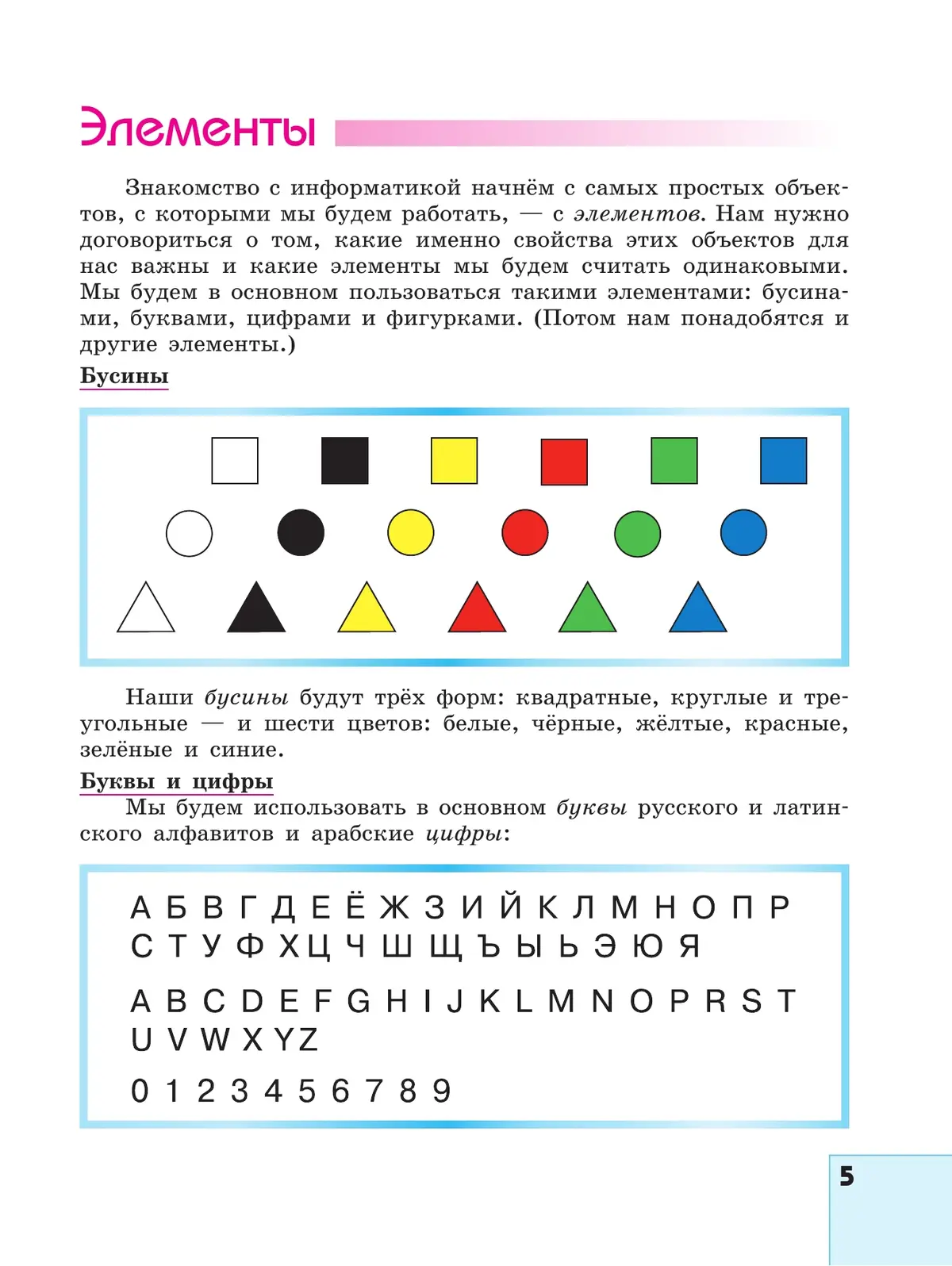 Учебник соответсвует ФГОС 2021 г. Учебно-методический комплект для 5—6 классов состоит из учебника, тетради проектов и пособия для учителя, которое содержит сведения о построении всего курса информатики, тематическое планирование, комментарии важных понятий курса, обсуждение и решение задач, подробные инструкции по работе в проектах и в компьютерном практикуме и др.