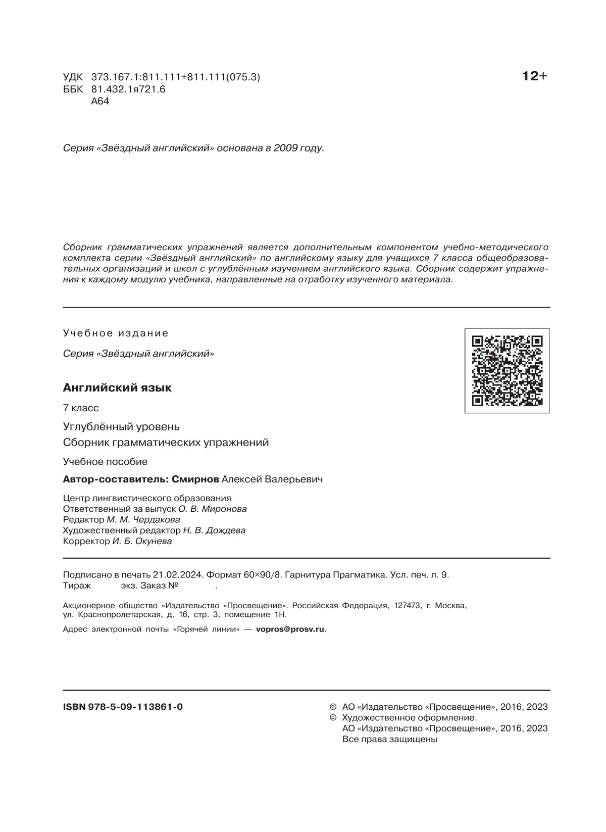 Сборник грамматических упражнений является дополнительным компонентом учебно-методического комплекта серии ≪Звёздный английский≫ по английскому языку для учащихся 7 класса общеобразовательных организаций и школ с углублённым изучением английского языка.