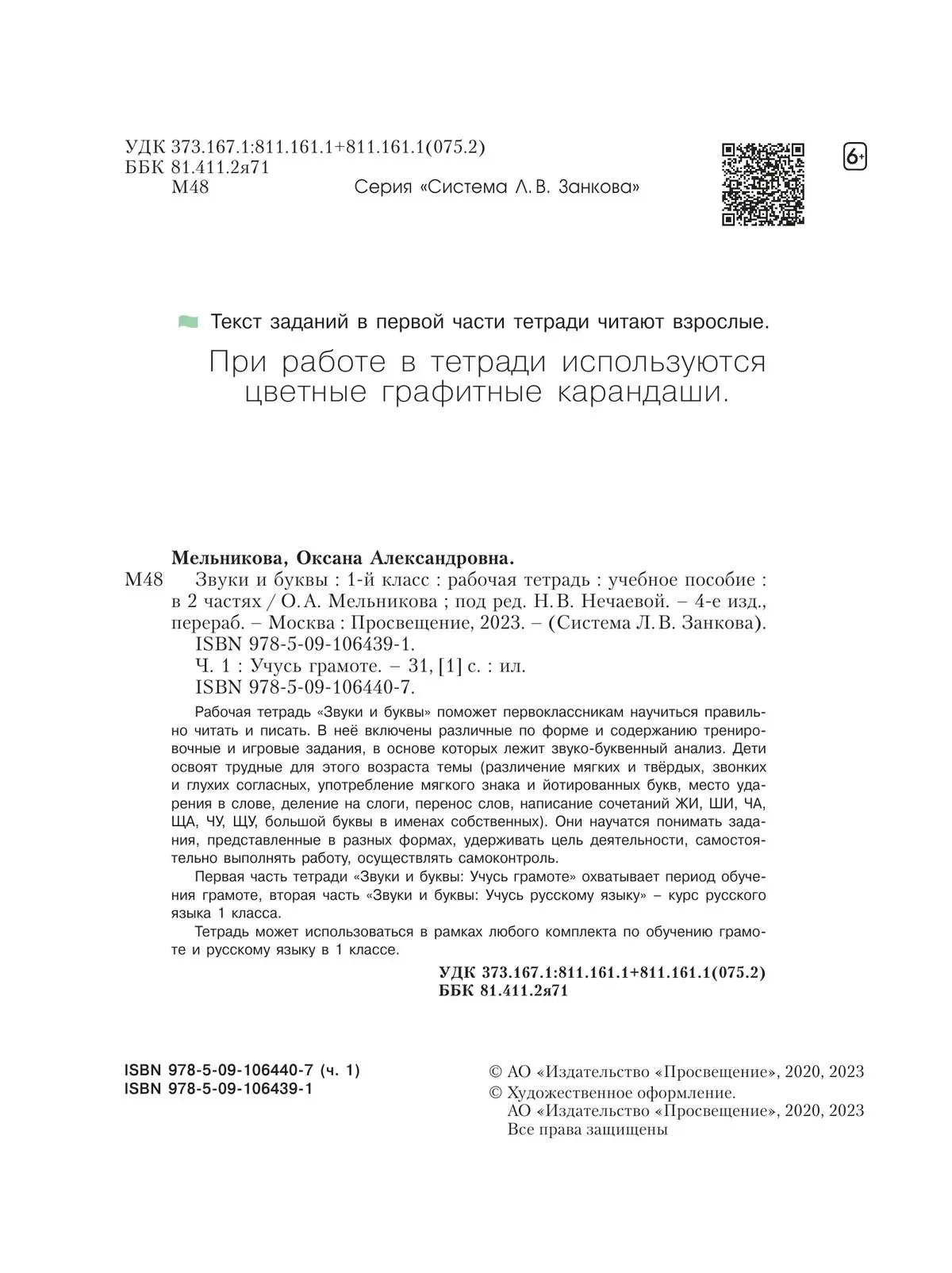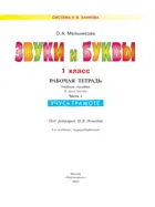 Первая часть тетради «Звуки и буквы: Учусь грамоте» охватывает период обучения грамоте, вторая часть «Звуки и буквы: Учусь русскому языку» – курс русского языка 1 класса.