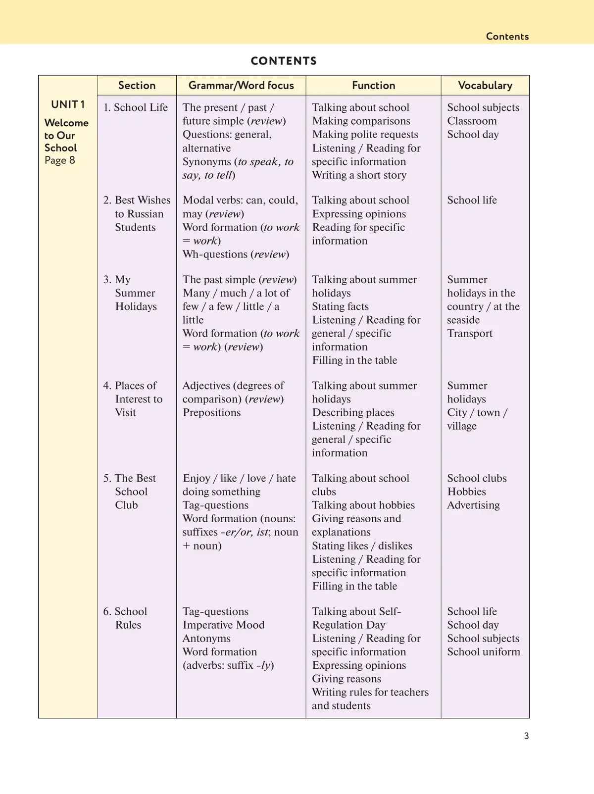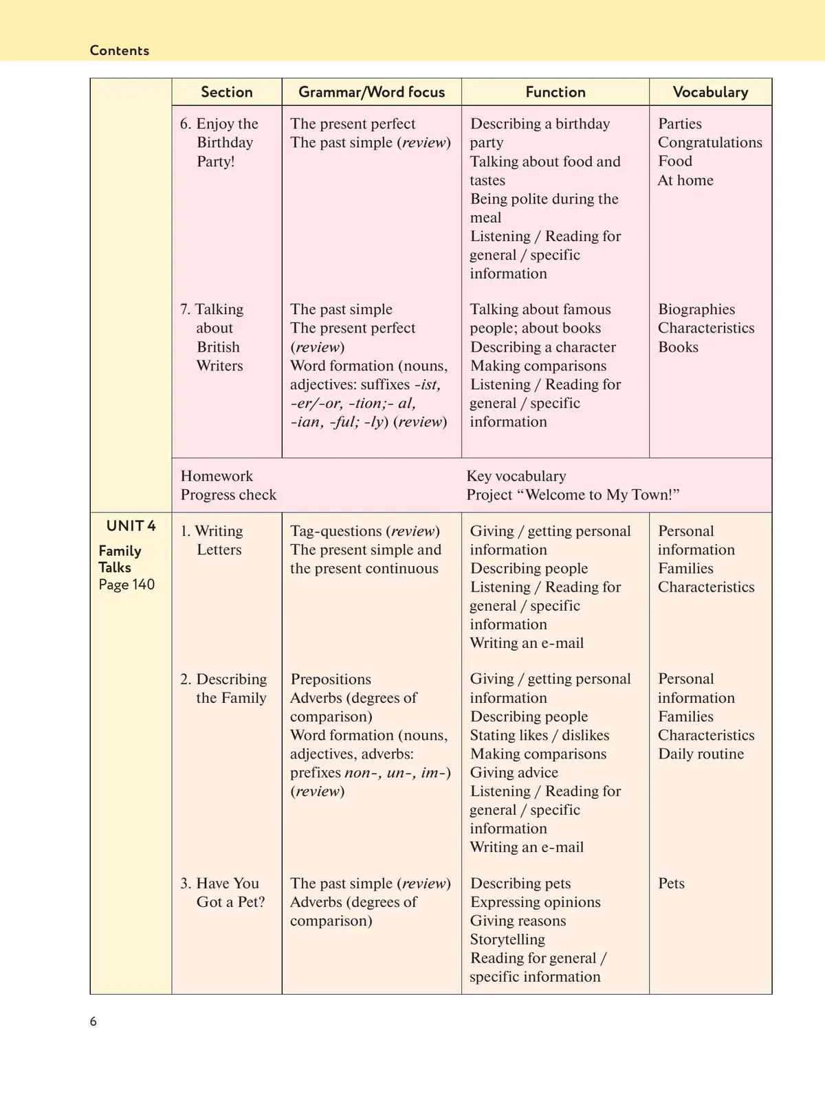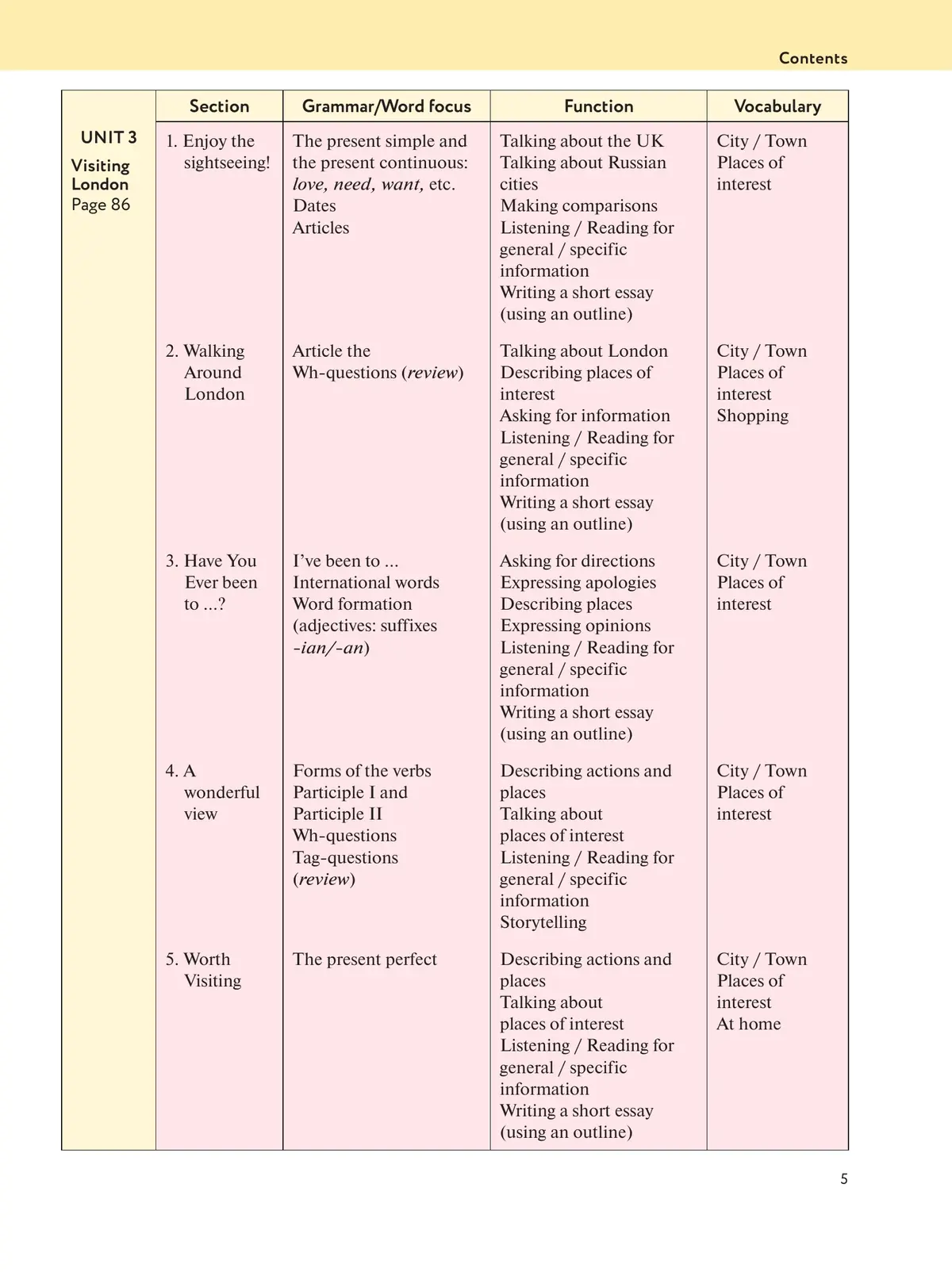 Разделы завершаются заданиями для самопроверки (Progress Check), позволяющими учащимся оценить достигнутый ими уровень овладения языком.