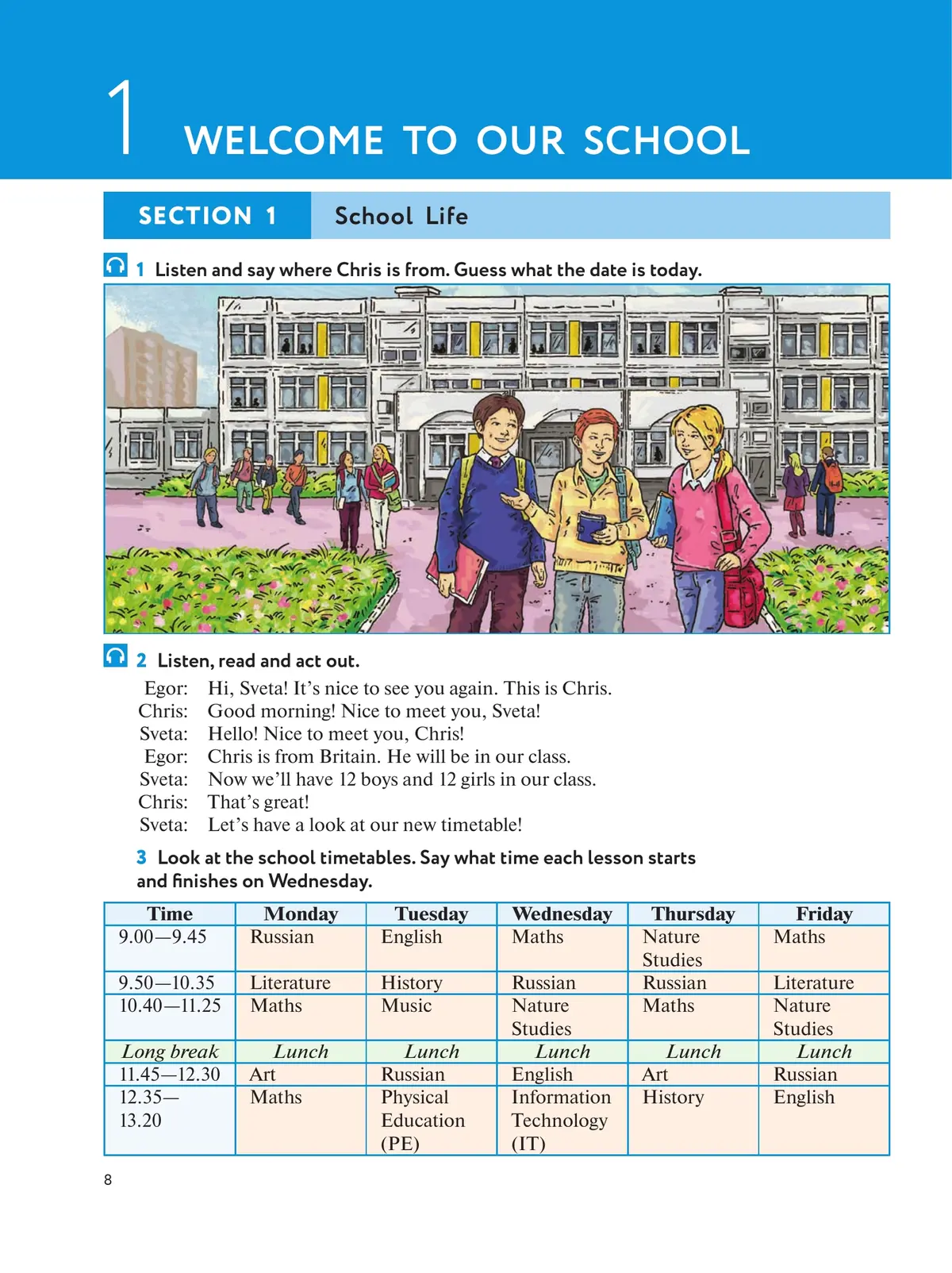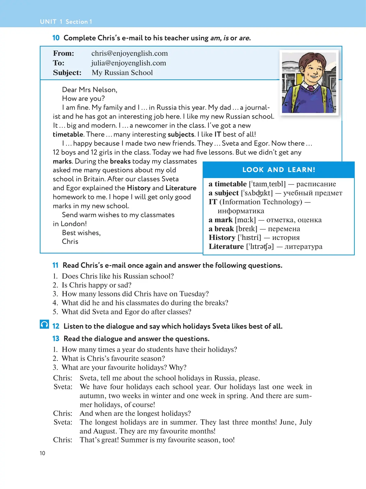 Тематика и аутентичный материал, используемые в учебном пособии, отобраны с учётом интересов и возрастных особенностей пятиклассников. Учебное пособие состоит из четырёх разделов, каждый из которых рассчитан на одну учебную четверть.