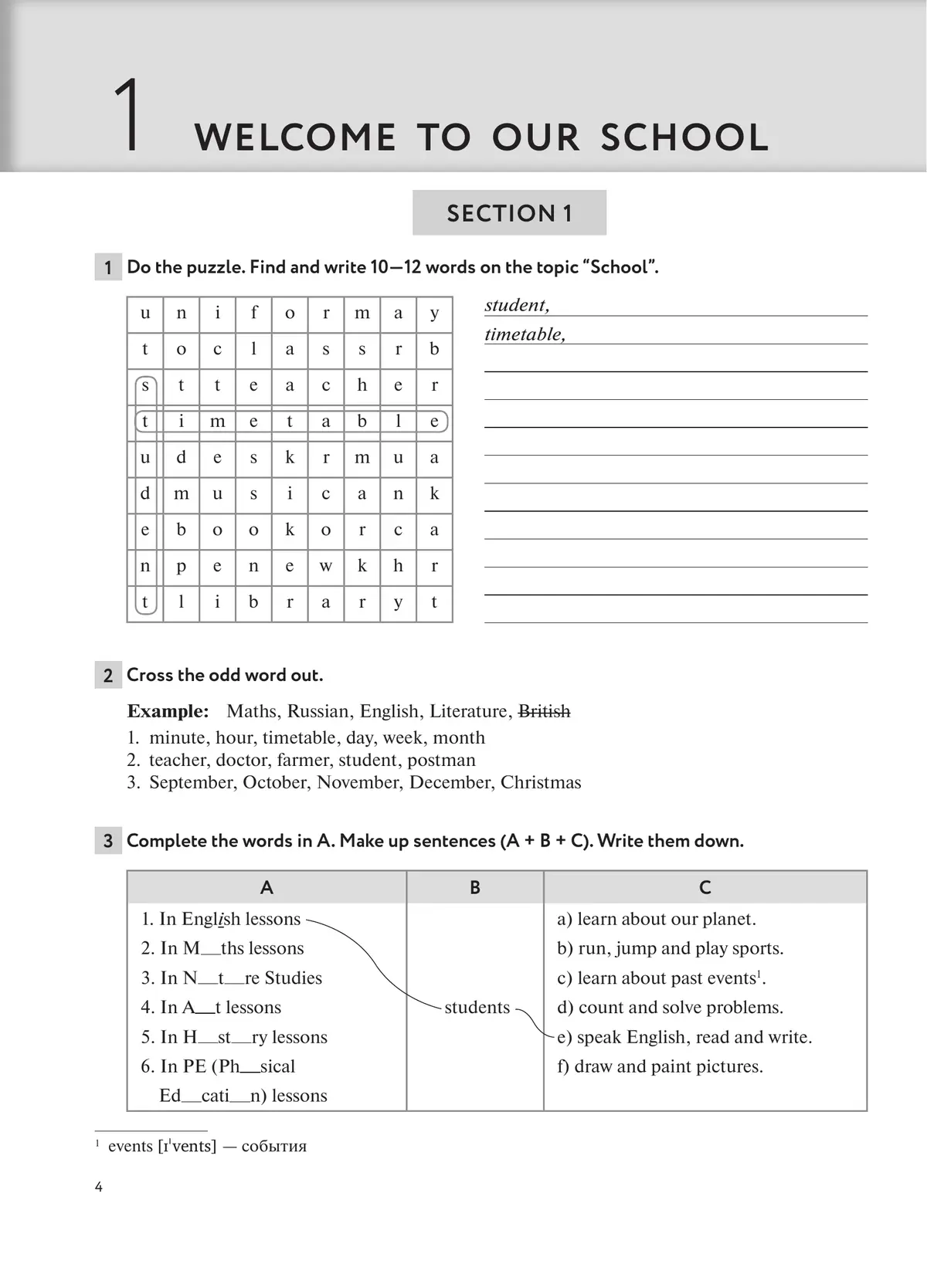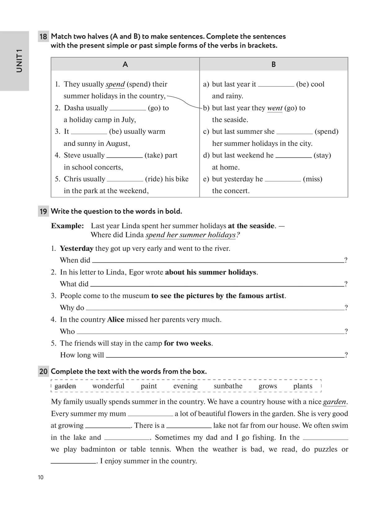 Рабочая тетрадь содержит упражнения, предназначенные для формирования у учащихся грамматических, лексических и орфографических навыков, а также для развития умений письменной речи и чтения.