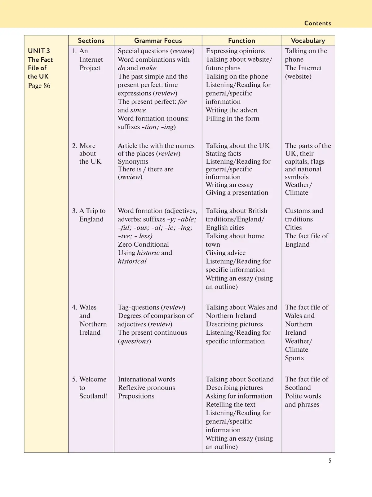 Разделы завершаются заданиями для самопроверки (Progress Check), позволяющими учащимся оценить достигнутый ими уровень овладения языком.
