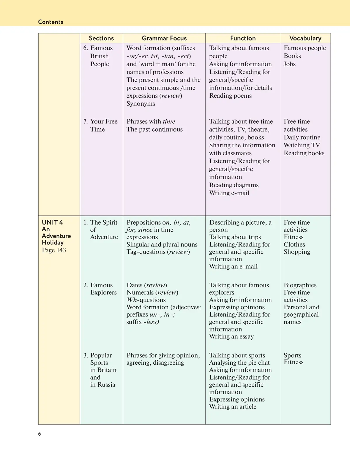Тематика и аутентичный материал, используемые в учебном пособии, отобраны с учётом интересов и возрастных особенностей шестиклассников. Учебное пособие состоит из четырёх разделов, каждый из которых рассчитан на одну учебную четверть.