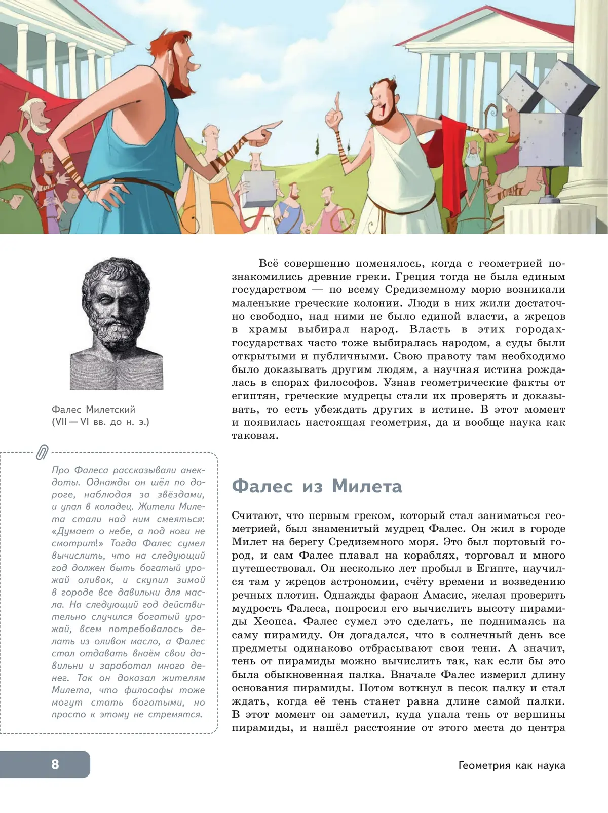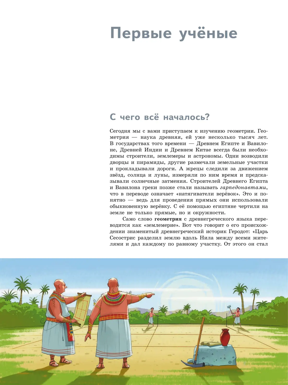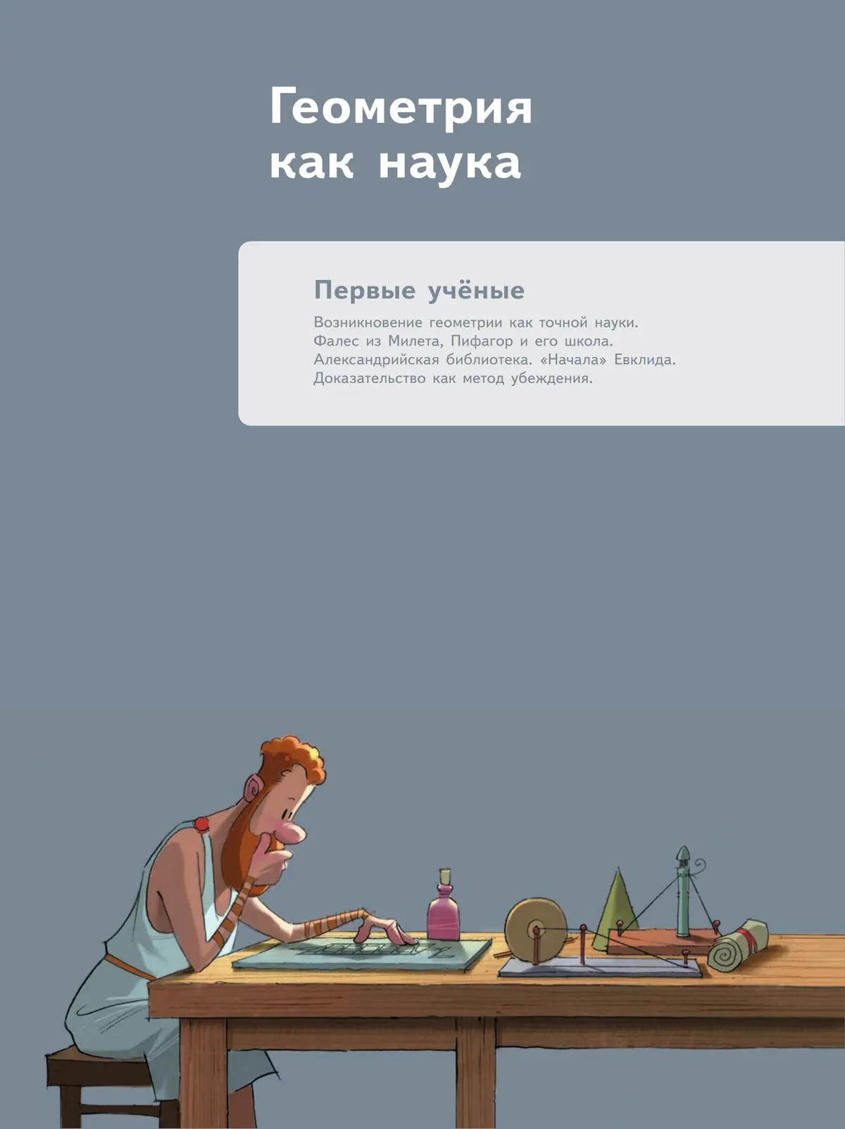 Первая часть учебного пособия начинается и заканчивается главами «Геометрия как наука», в которых рассказано об истории зарождения и становления геометрической науки.