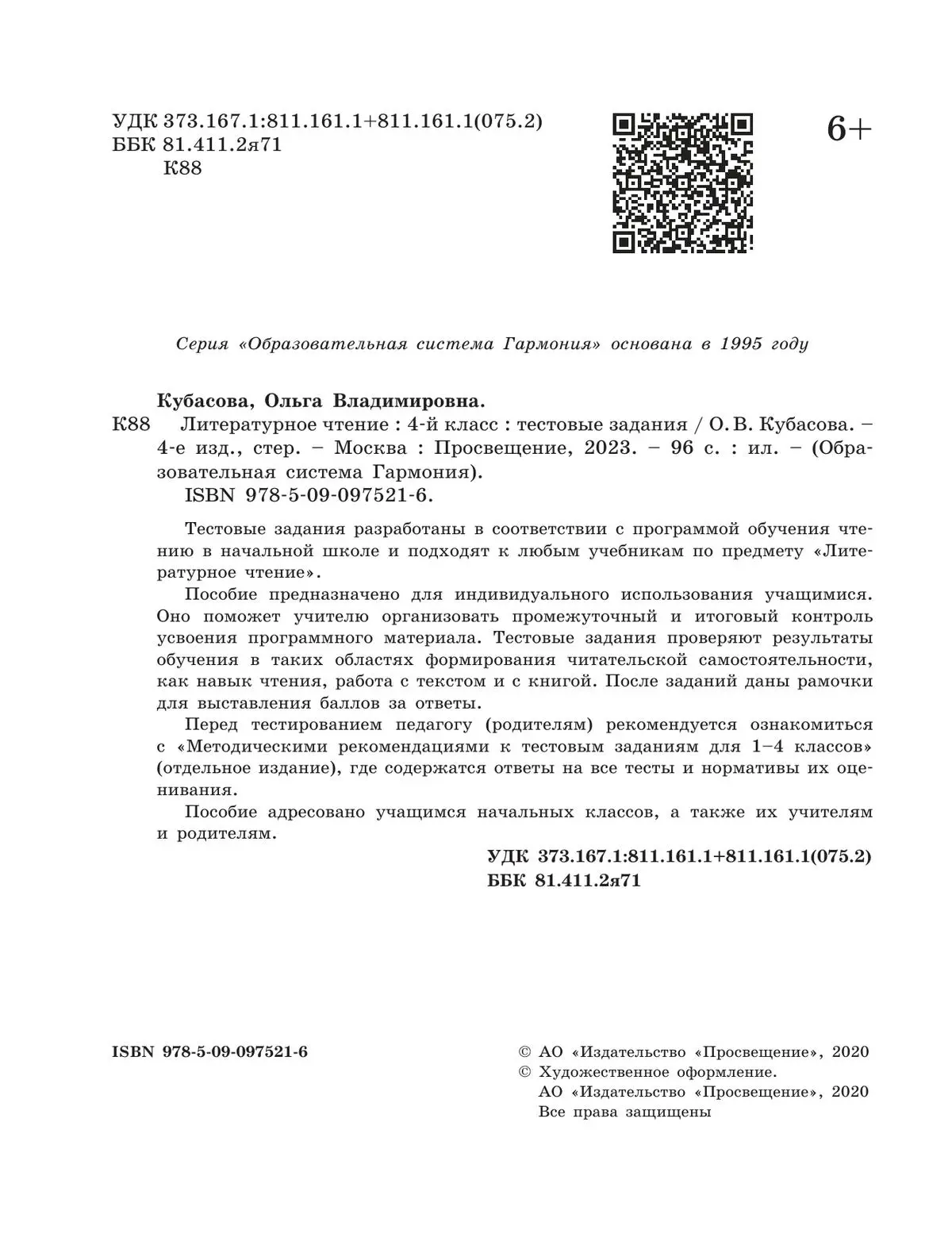 Тестовые задания разработаны в соответствии с программой обучения чтению в начальной школе и подходят любым учебникам по предмету «Литературное чтение». Книги предназначены для индивидуального использования учащимися.