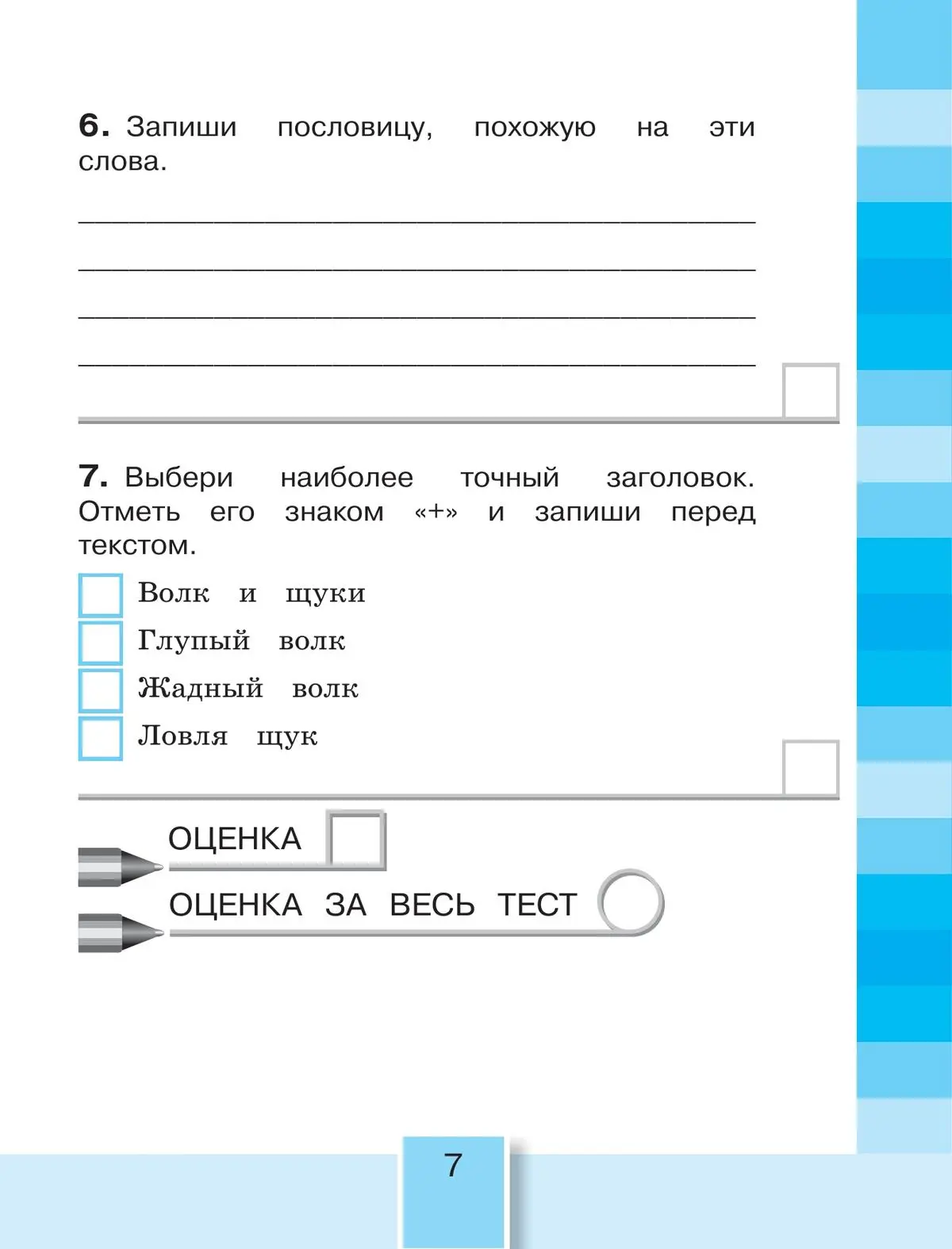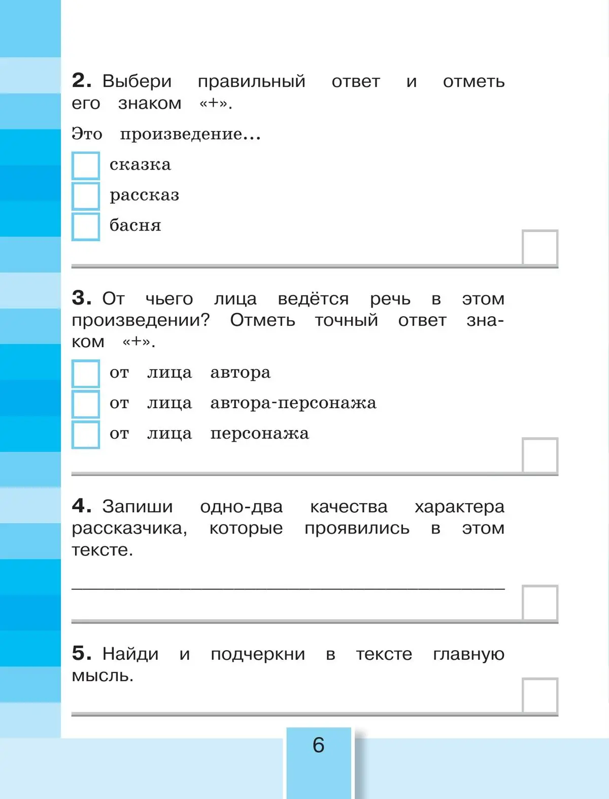 Тестовые задания проверяют результаты обучения в таких областях формирования читательской самостоятельности, как навык чтения, работа с текстом и с книгой.