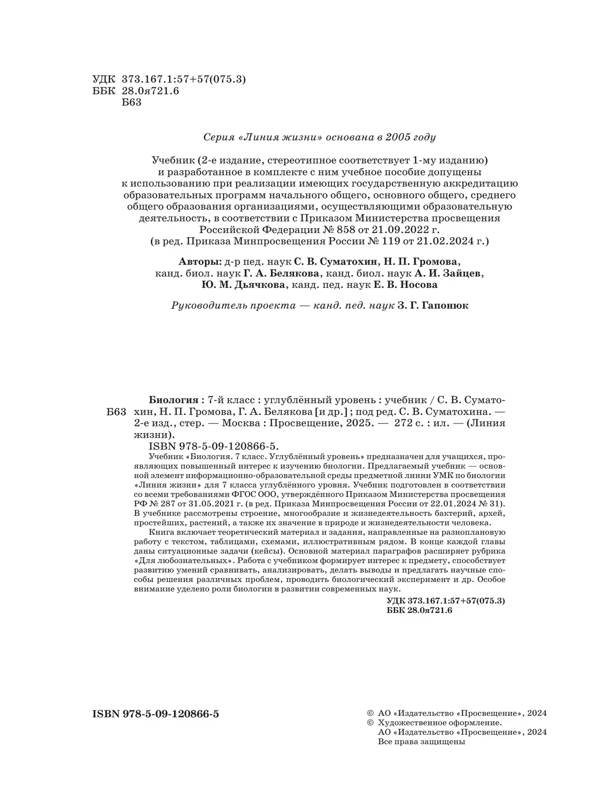 Учебник «Биология. 7 класс. Углублённый уровень» предназначен для учащихся, проявляющих повышенный интерес к изучению биологии. Предлагаемый учебник — основной элемент информационно-образовательной среды предметной линии УМК по биологии «Линия жизни» 7 класса для углублённого уровня.