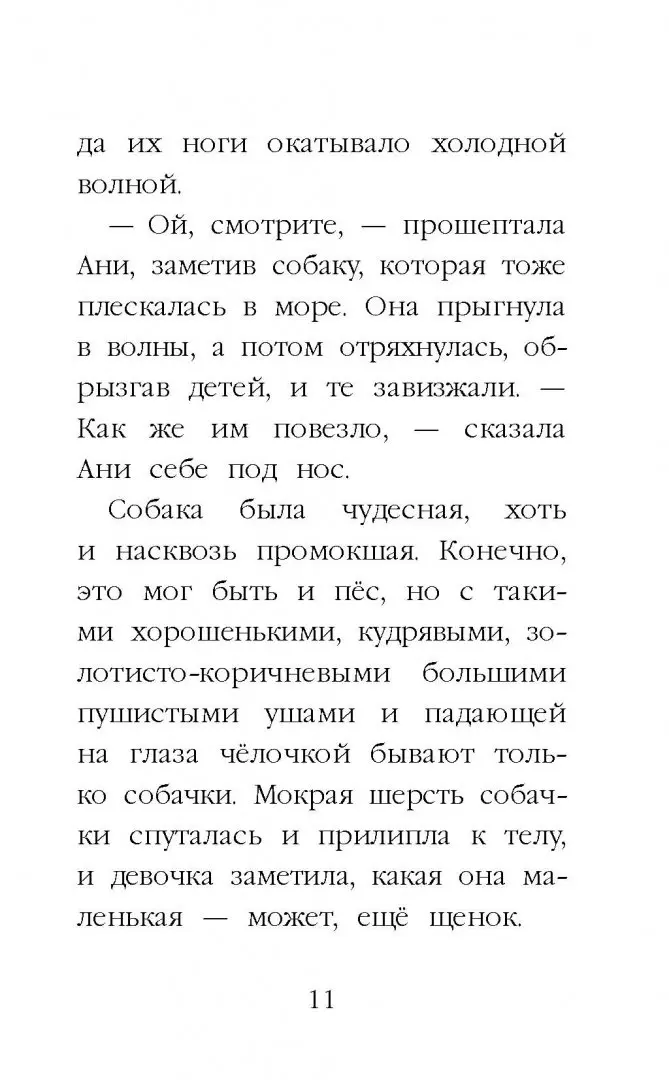 На пляже Ани познакомилась с дружной семьей и их щенком Молли. Они весело играли весь день, но на следующий день семья на пляж не пришла, а их щенок… пришел. Ани возмутилась - что за безответственные люди, не смотрят за своей собакой! Она поймала Молли и отправилась искать своих новых знакомых. Только оказалось, что Молли - не их собака. У них вообще нет собаки. А Молли - щенок кого-то из отдыхающих. Так чей же питомец Молли? У нее есть хозяин или она бездомная? И если она бездомная - нельзя ли Ани оставить ее себе? Для младшего школьного возраста.