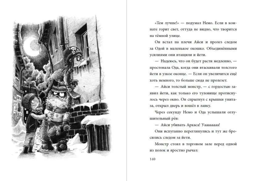 И угораздило же Немо родиться в Нудинге, самом скучном городке на свете! А ведь он всю жизнь мечтал о приключениях — но разве в таком болоте случится что-нибудь интересное?! Однако Немо и подумать не мог, какие головокружительные перемены его ждут... Всё началось с того, что к нему в руки попала странная посылка с надписью «Не открывать!». Конечно же, мальчик ни минуту не сомневался — эту коробку надо срочно открыть! И как же он удивился, когда обнаружил внутри плюшевого йети — живого и очень прожорливого! А тем временем на улице пошёл снег — прямо в середине лета! Теперь Немо и его друзьям Фреду и Оде нужно выяснить: кто же такой этот йети? Как его приручить? А главное — кто и зачем его прислал? Ребятам придётся поторопиться: ещё немного — и в городе случится снежная катастрофа!
