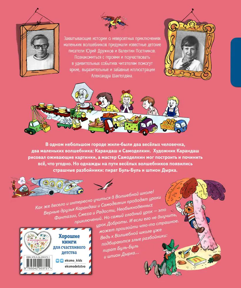Увлекательные и добрые сказочные повести известного детского писателя Юрия Дружкова «Приключения Карандаша и Самоделкина» и «Волшебная школа Карандаша и Самоделкина» обрели невероятную популярность сразу после первого выхода из печати. Даже знаменитый классик Корней Иванович Чуковский сетовал, что смог получить в библиотеке первую книгу только спустя три месяца ожидания: такая была очередь на чтение! Это неудивительно: ведь главных героев — волшебного художника Карандаша и железного мастера Самоделкина — знала вся страна. Они были главными персонажами самого популярного детского журнала «Весёлые картинки», тиражи которого доходили до 9,5 миллионов экземпляров в месяц!