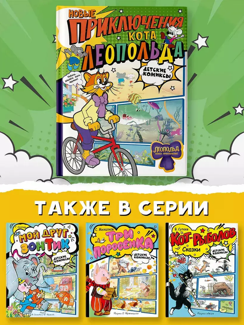 Кто не знает Леопольда? Это самый добрый, мудрый и невероятно спокойный кот! Леопольд — очаровательный интеллигент, который всегда носит бабочку и готов дружить даже с мелкими вредителями Белым и Серым. Истории про кота Леопольда — актуальны и учат добру, милосердию и взаимовыручке. Они помогают увидеть прекрасное в каждом дне и призывают радоваться окружающей природе. Приключения кота Леопольда вселяют веру в то, что всё будет хорошо! В сборник вошли пять историй: "Бурный поток", "На рыбалке у реки", "Под жарким солнцем", "Вперёд за колбасой и сыром", "Парк развлечений". Забавные приключения кота Леопольда и двух назойливых мышат Белого и Серого не оставят равнодушными ни детей, ни их родителей!