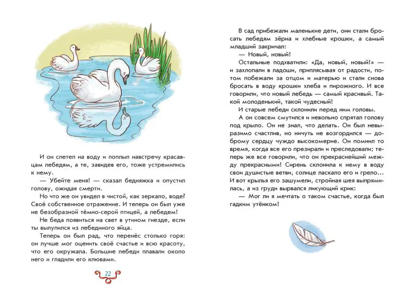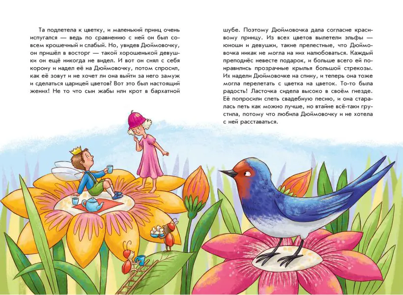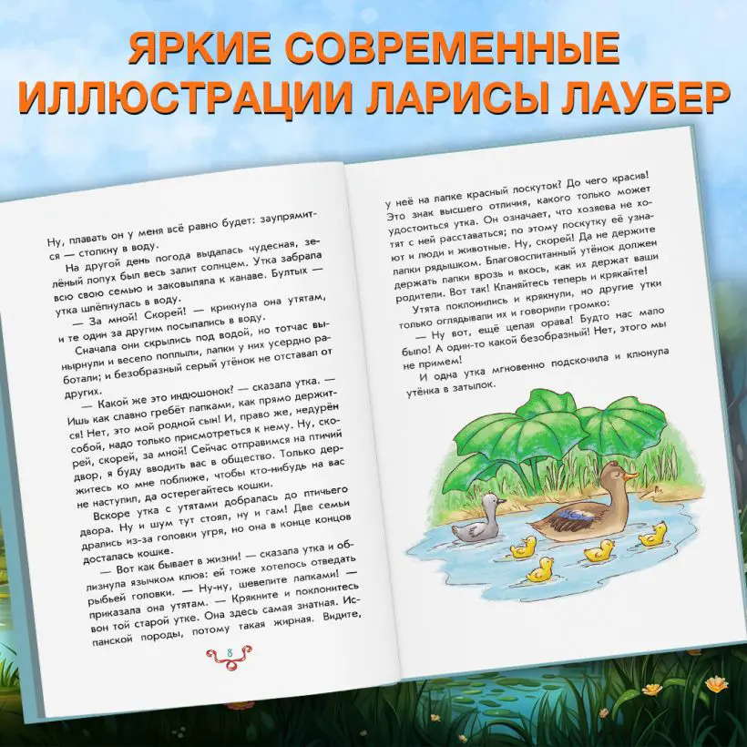 Самые популярные персонажи Ганса Христиана Андерсена - Дюймовочка, Гадкий утёнок, Русалочка и многие другие - нашли своё место в книге добрых сказок. В сборник вошли восемь сказок в классическом переводе Анны и Петра Ганзен. Герои в исполнении немецкой художницы Ларисы Лаубер приобрели динамичность и выразительность, близкие и понятные современным детям. Яркие и забавные иллюстрации, похожие на кадры из мультфильмов, стали отличительной чертой стиля Лаубер. В сборнике "добрых сказок" маленький читатель найдёт сюжеты о сострадании, любви и честности. "Стойкий оловянный солдатик" и "Русалочка" расскажут печальные, но трогательные истории любви, "Девочка со спичками" научит тому, что свет можно найти даже в самые тёмные времена, а "Новое платье короля" заставит посмеяться над нерадивым королём и его нерадивыми поданными.