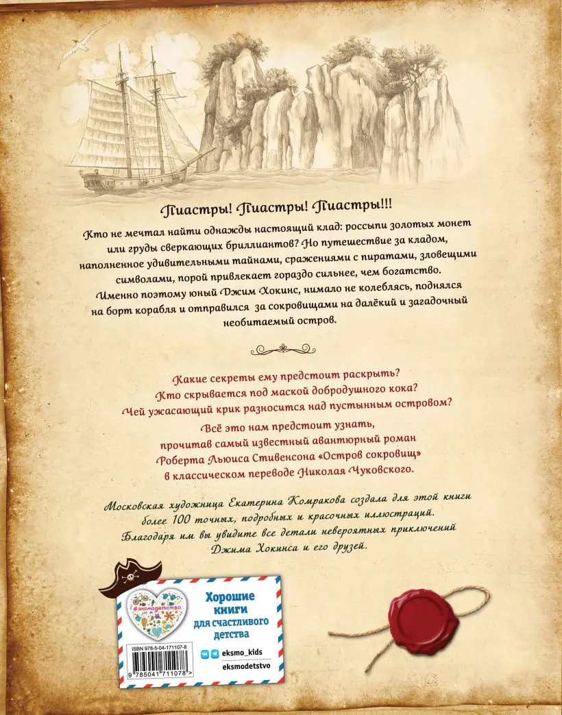 На протяжении десятилетий эта книга остаётся на пике популярности. В ней есть всё: загадки и тайны, коварные злодеи и благородные джентльмены, дальнее путешествие и экзотические пейзажи. И, разумеется, груды золота и драгоценностей!