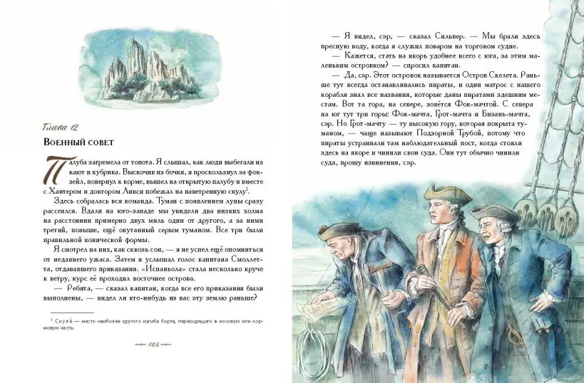Благодаря иллюстрациям московской художницы Екатерины Комраковой мы полностью погружаемся в романтику морских странствий. Перед глазами возникают яркие, характерные образы персонажей. И вы никогда не пожалеете, что провели с этой книгой несколько увлекательнейших часов!