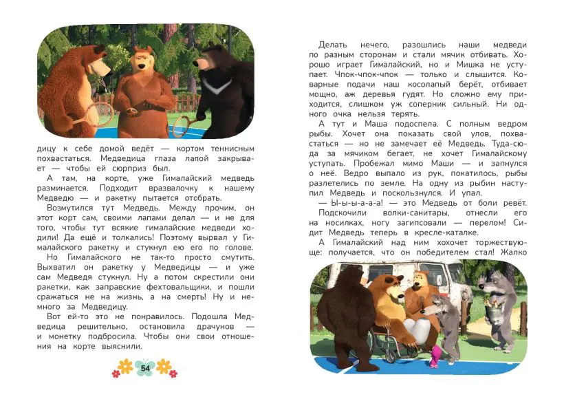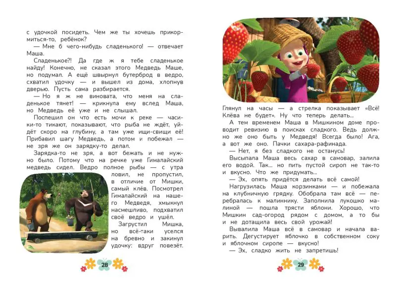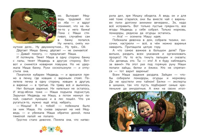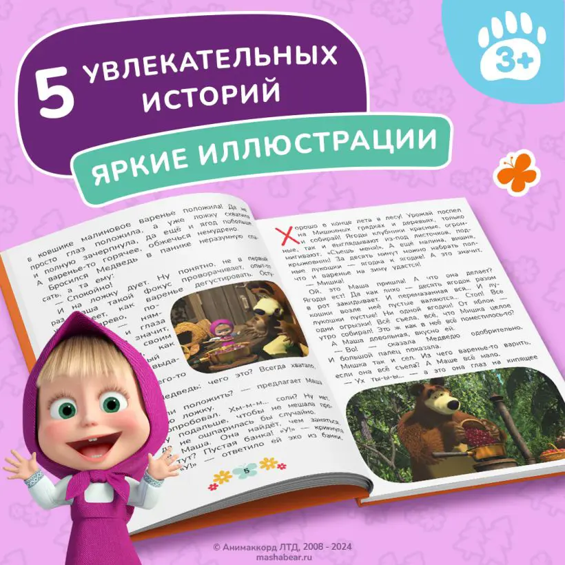В книге собрано 5 увлекательных рассказов про Машу, Медведя и других обитателей леса. Много ли варенья сварит Медведь, когда Маша примется ему помогать? Что за приёмная «дочка» появилась у озорной девочки? Кто лучше играет в теннис — гималайский мишка или наш Топтыгин? И что будет, когда к Маше приедет её сестра Даша? Чтобы узнать это, читайте весёлые и занимательные рассказы нашего сборника!