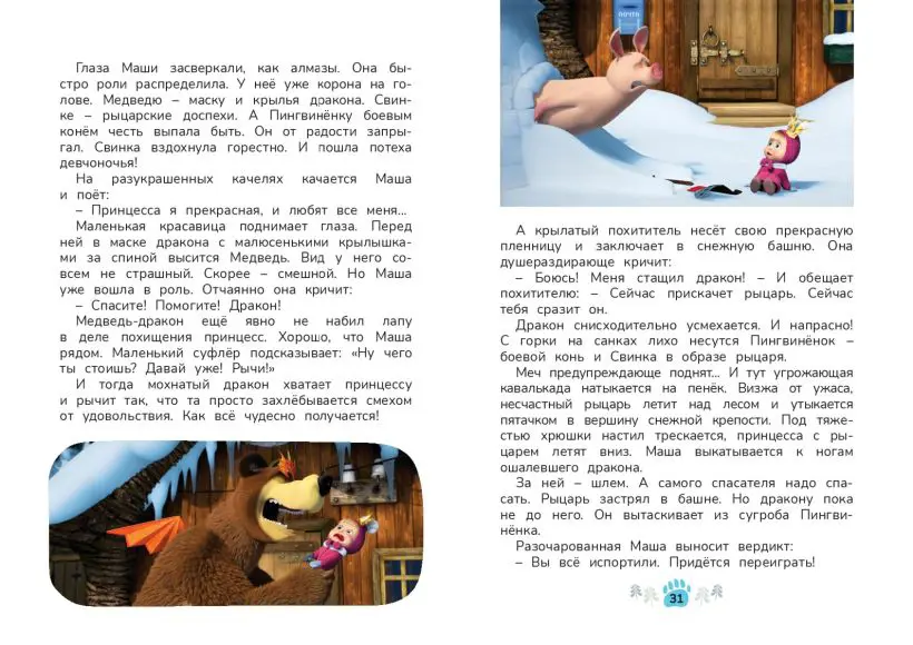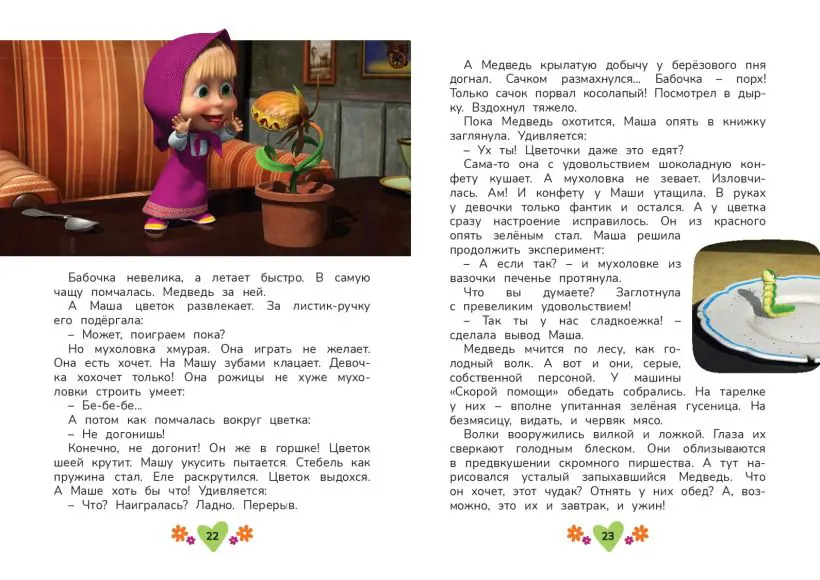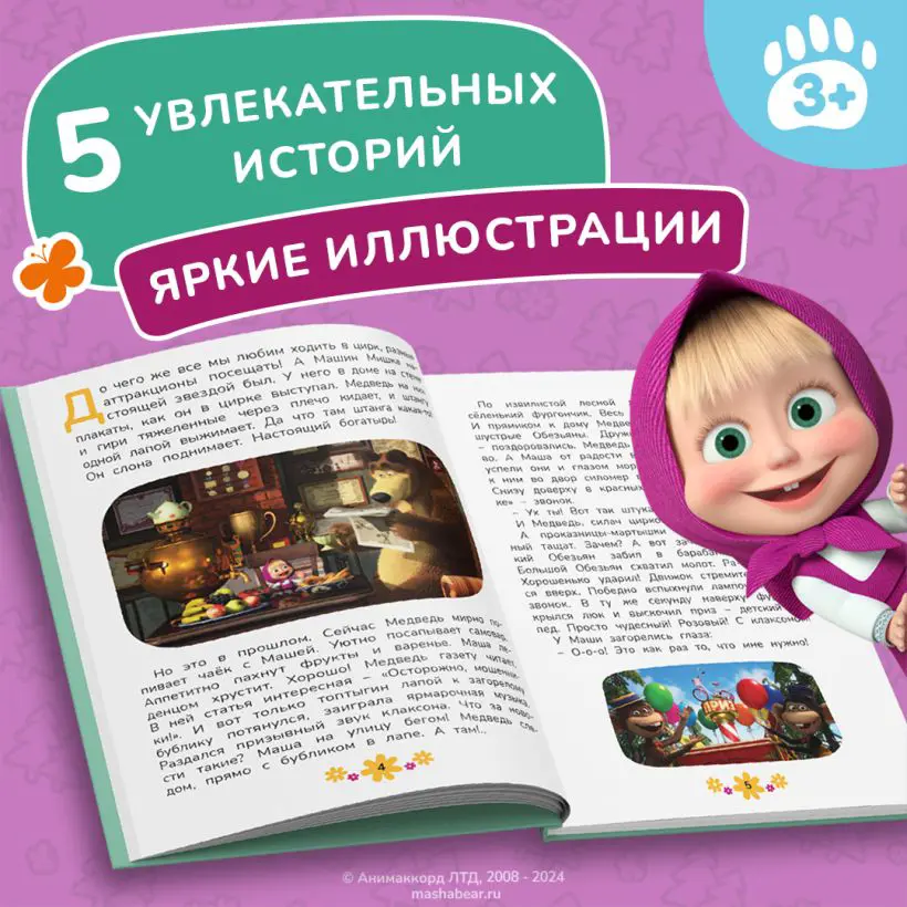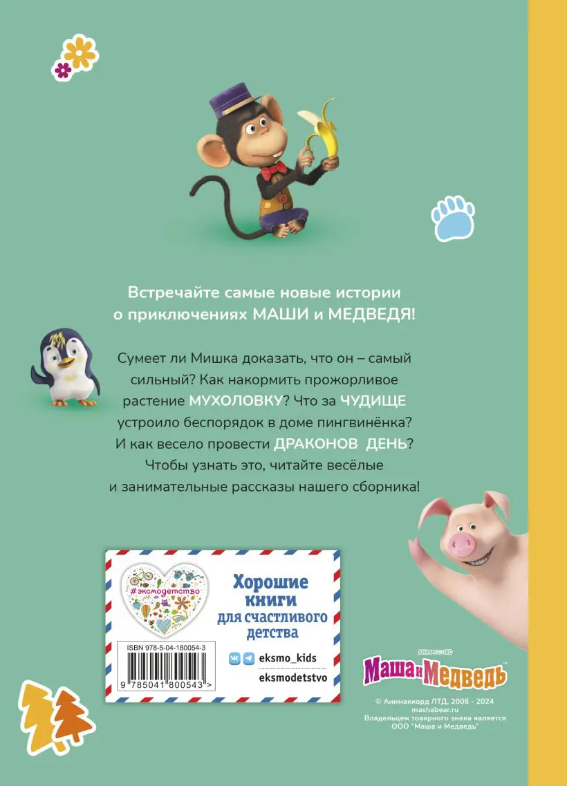В книге собрано 5 увлекательных рассказов про Машу, Медведя и их друзей. Сумеет ли Мишка доказать, что он — самый сильный? Как накормить прожорливое растение мухоловку? Что за чудище устроило беспорядок в доме пингвинёнка? И как весело провести Драконов день? Чтобы узнать это, читайте весёлые и занимательные рассказы нашего сборника!