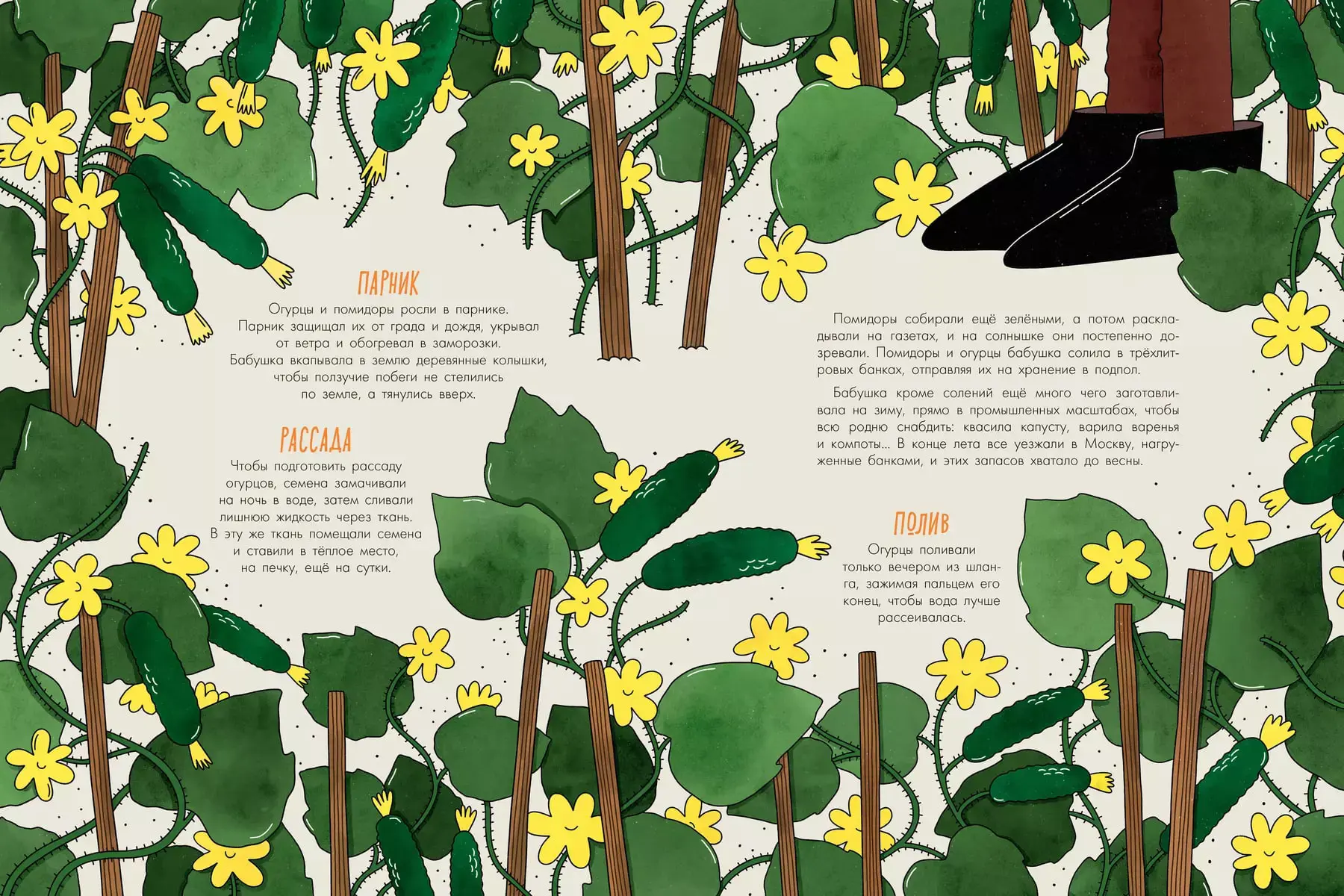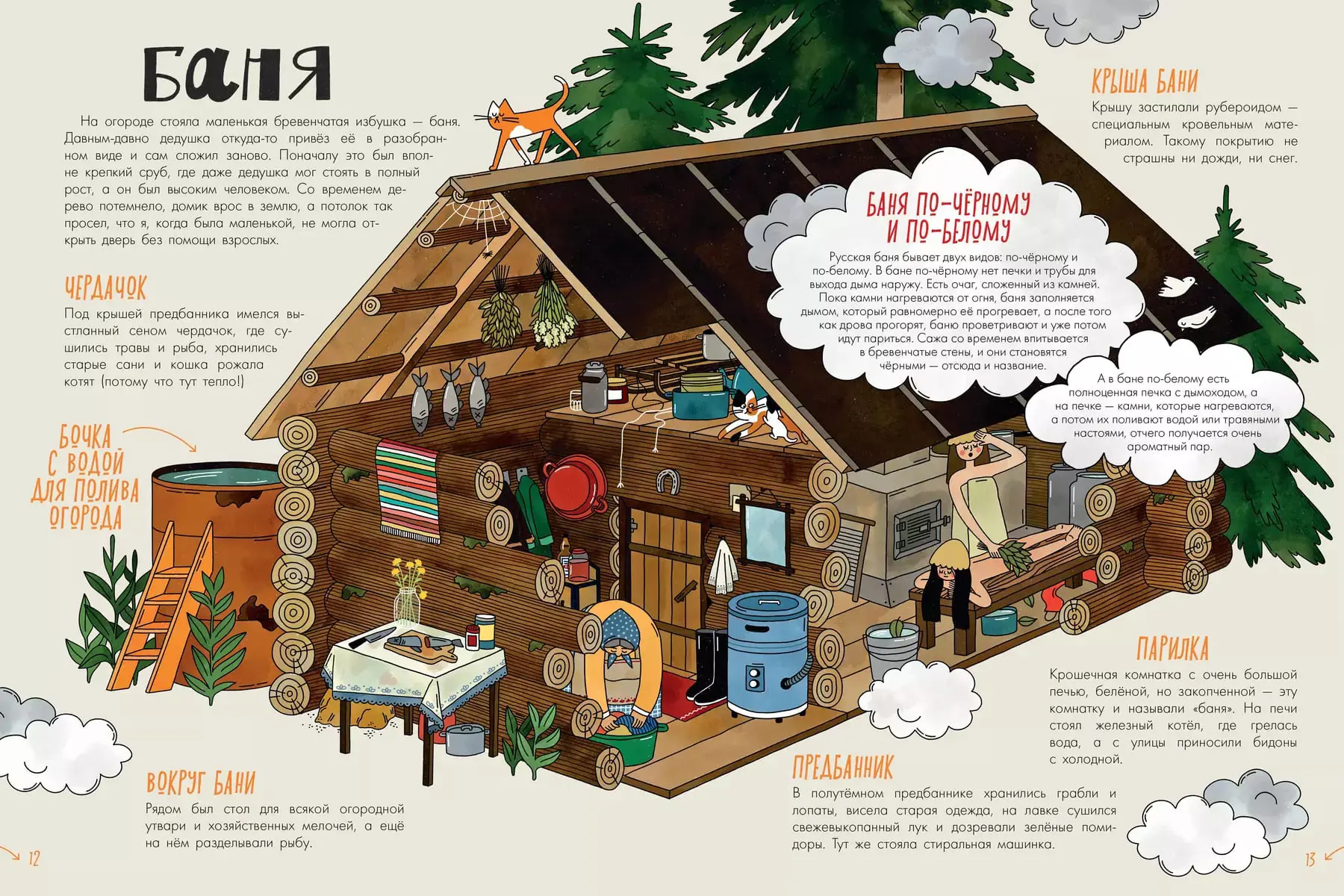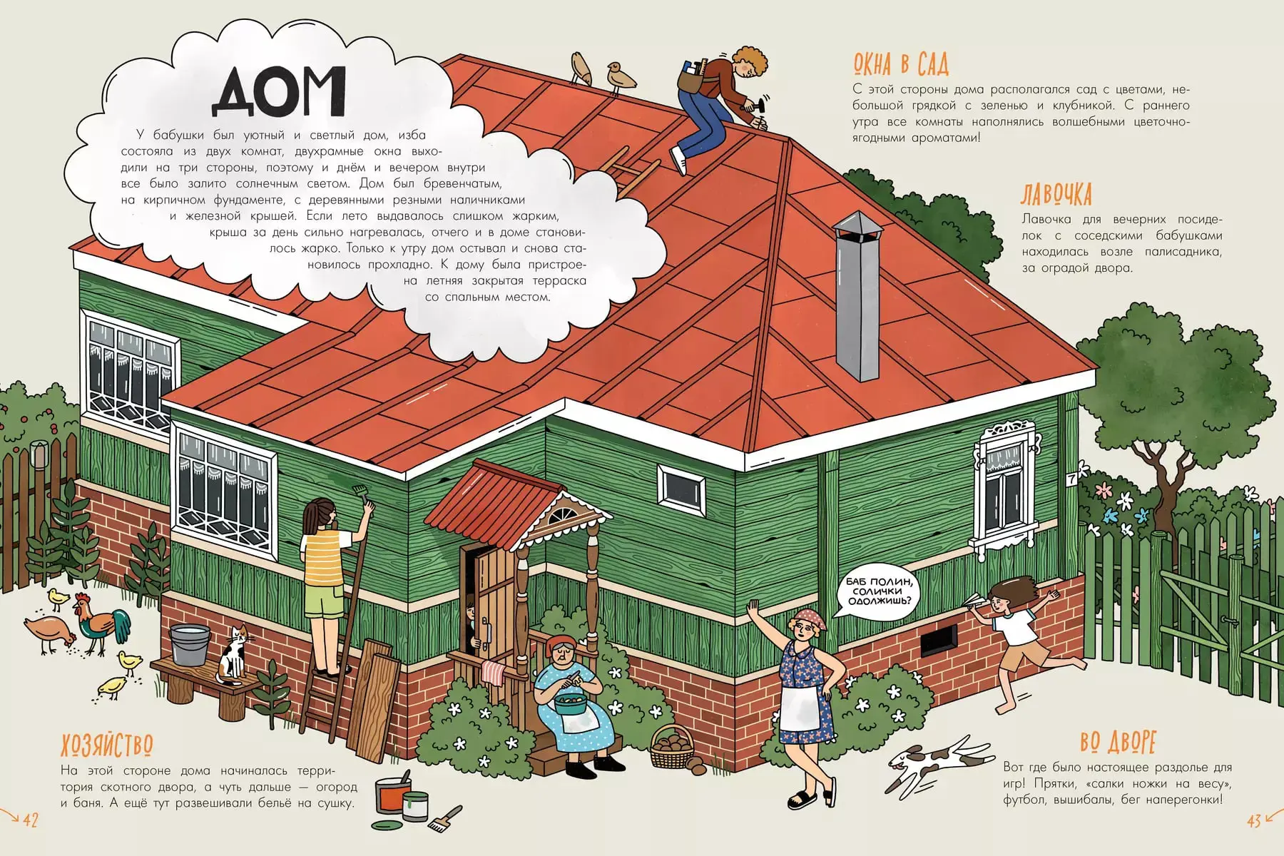 Эта книга — дань уважения беззаботному детству, проведенному у бабушки. Автор и художник — Евгения Кишмария — с любовью воссоздает атмосферу деревенского быта, подробно описывая предметы и традиции, которые формировали жизнь ее большой семьи. Словно в старом фотоальбоме, мы посмотрим страницы семейной истории, погружаясь в увлекательные воспоминания о большом старом доме, наполненном уютом и теплом. Для широкого круга читателей.