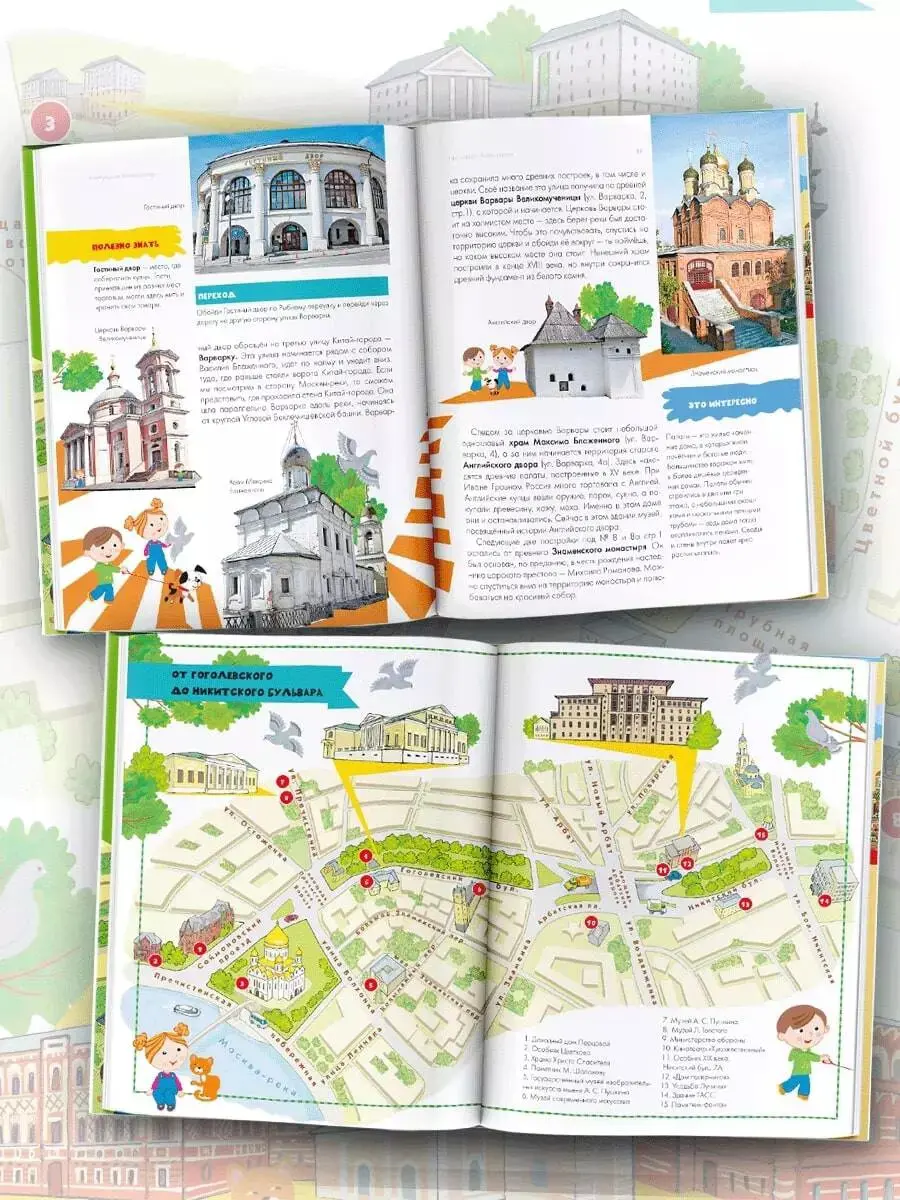 Приглашаем взрослых и детей погулять по столице нашей родины - прекрасному древнему городу Москве. Историк-искусствовед и экскурсовод Александра Клюкина проведёт семейные экскурсии по самым интересным местам города, дополнив их любопытными рассказами, историческими справками, заданиями для детей и, конечно же, фотографиями и уникальными детскими картами! Пешеходные прогулки рассчитаны по времени, расстоянию и выбору объектов на детей, поэтому уверены - так гулять по столице, понравится всей семье! Узнавай Москву, путешествуя с энциклопедией-путеводителем! Для младшего и среднего школьного возраста. Энциклопедия-путеводитель по Москве поможет вам изучить столицу всей семьей. Ведь карты и разнообразная информация рассчитаны не только на взрослых, но и на детей. Историк-искусствовед и экскурсовод Александра Клюкина проверила и поместила в энциклопедию-путеводитель те пешеходные экскурсии, которые будут по силам ребятам. Они выверены не только по времени и расстоянияю, но и по объектам, которые по-настощему интересны детям. Подробные и понятные указания, как добраться до нужного места, задания для детей, которые можно предложить ребенку после прогулки или во время нее, яркие фотографии и уникальные детские карты столицы - помогут взрослым и детям получить настоящее удовольствие от прогулок по Москве. Изучай Москву с энциклопедией-путеводителем!