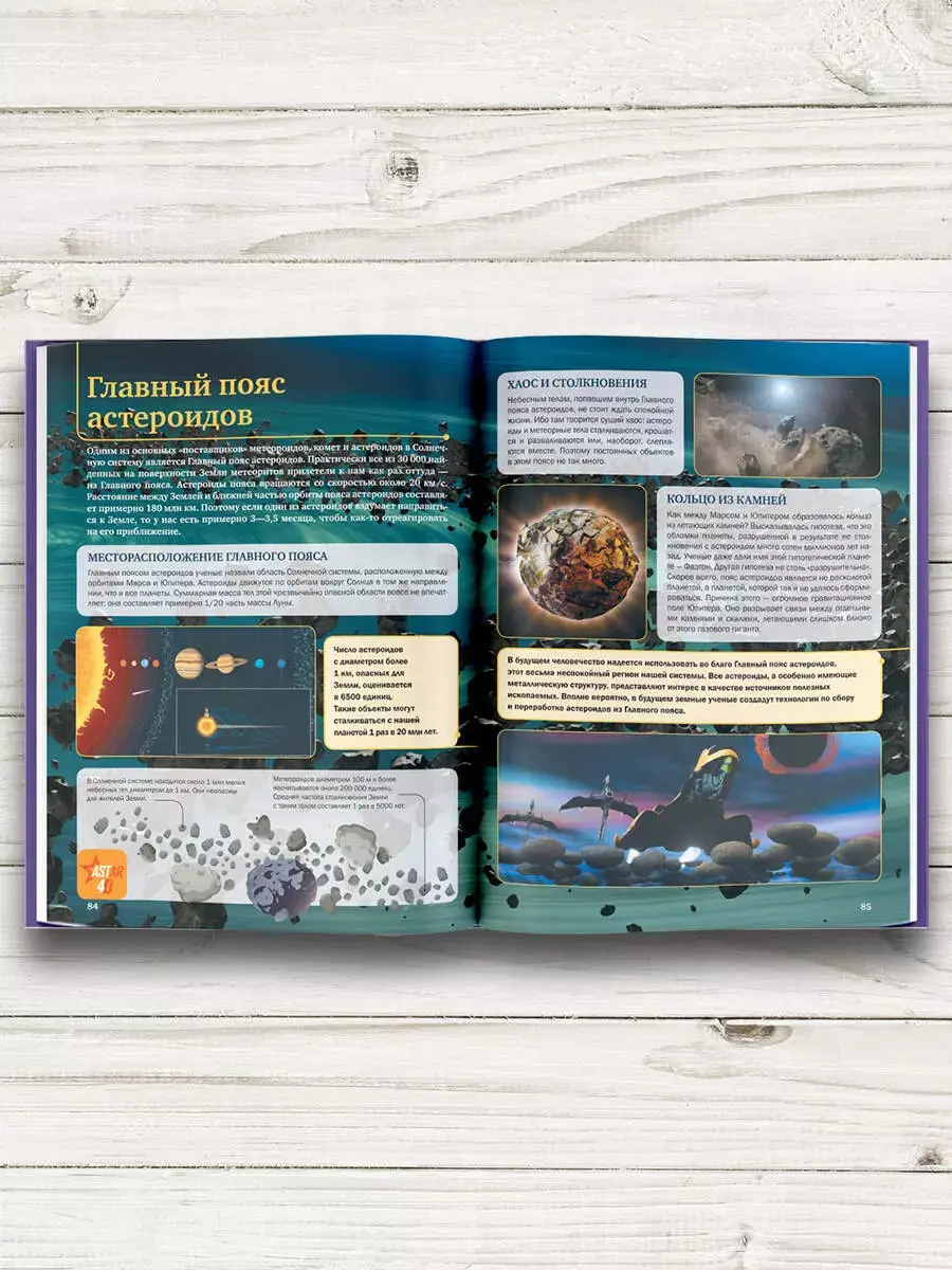 Эта 4D‑энциклопедия с дополненной реальностью знакомит читателя с необъятным космосом. Здесь содержится исчерпывающая информация о том, как люди на протяжении тысячелетий стремились к звездам и постепенно познавали недостижимое, но такое манящее небо: строили обсерватории, составляли карты созвездий, изобретали летательные аппараты, запускали в космос человека, высаживались на Луну, выходили в открытое межпланетное космическое пространство... И все это для того, чтобы узнать как можно больше о планетах, Солнце, галактиках, астероидах и множестве других космических объектов.