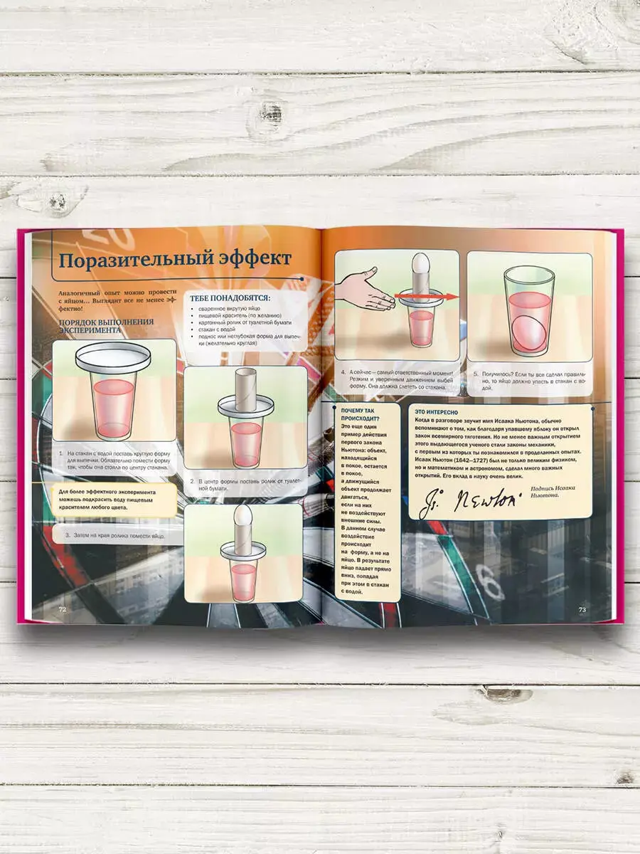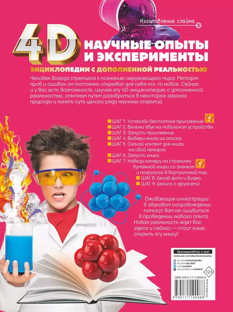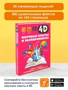 Это 4D-издание с дополненной реальностью знакомит читателя с естественными науками с помощью занимательных и несложных опытов и экспериментов, которые помогут разобраться в явлениях окружающего мира. Хотите узнать, что такое атмосферное давление, и сделать барометр своими руками, изучить законы Ньютона и построить собственную реактивную лодку, познать свойства веществ и, приготовив невидимые чернила, написать таинственное послание? Тогда открывайте эту необычную книгу и почувствуйте себя настоящим ученым. А оживающие картинки точно не дадут вам ошибиться в проведении того или иного опыта. Кроме того, каждая 4D-анимация сопровождается звукозаписью с полезной информацией и интересными фактами. Для среднего и старшего школьного возраста.