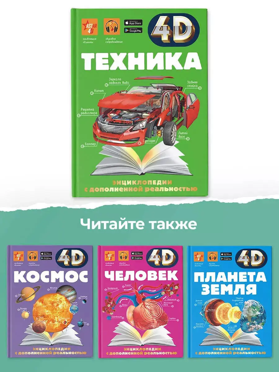 Эта 4D-энциклопедия с дополненной реальностью расскажет о многочисленных устройствах и механизмах, без которых невозможно представить современный мир.Различные типы двигателей – от древних до новейших, бытовые приборы и рабочие инструменты, транспорт, военная техника и космические аппараты – устройство и характеристики машин и приспособлений раскрываются на страницах этой книги. А 4D-анимации помогут наглядно и в объеме изучить конструкцию двигателя внутреннего сгорания и коробки передач, американских горок и телескопа, беспилотника и ледокола, древней катапульты и высокотехнологичной ракеты. Каждая «живая» картинка сопровождается звукозаписью с полезной и интересной информацией. Откройте эту необычную энциклопедию и окунитесь в мир научно-технических открытий и изобретений. Для среднего и старшего школьного возраста.