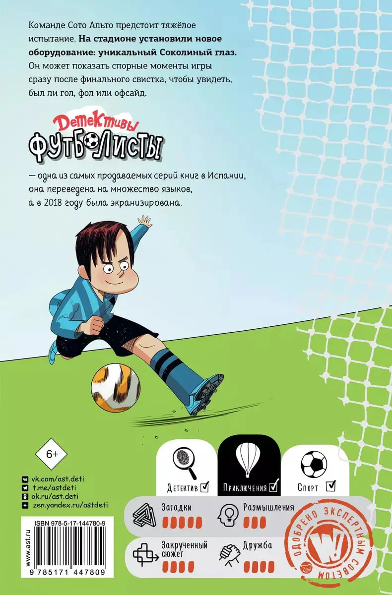 Можете ли вы себе представить, что в реальной жизни есть возможность перемотать время назад и увидеть повтор события в замедленной съёмке? Что ж, это может "Соколиный глаз": он показывает спорные моменты матча в записи, чтобы увидеть, был ли гол, фол или офсайд. Роберто Сантьяго работал сценаристом на телевидении, редактором и продюсером. Серия про детективов-футболистов стала настоящим культурным феноменом, это одни из самых продаваемых книг в Испании, они переведены на разные языки мира, а в 2018 году даже были экранизированы.