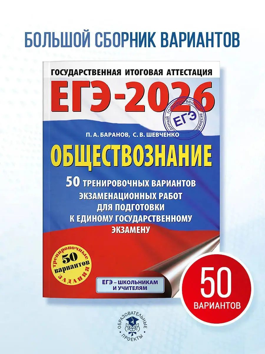 ЕГЭ-2026. Обществознание. 50 тренировочных вариантов экзаменационных работ для подготовки к ЕГЭ