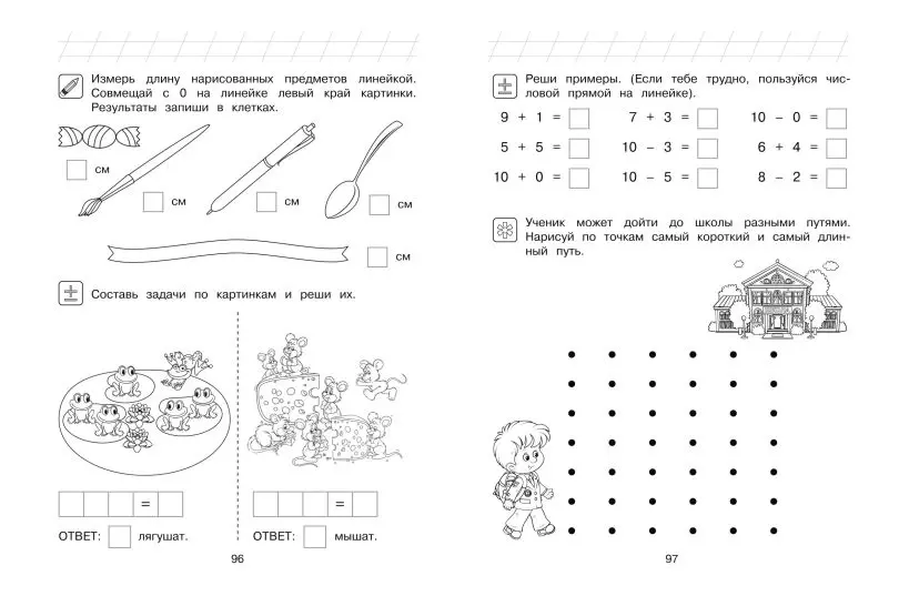Выполняя интересные игровые задания, ребенок освоит состав числа в пределах 10, будет решать примеры и задачи на сложение и вычитание с помощью числовой прямой, сравнивать числа, потренируется в составлении и решении задач. Знания, умения и навыки, которые дошкольник приобретет в результате занятий, позволят ему почувствовать уверенность в себе и в дальнейшем их успешно использовать. Кроме того, в пособии имеются методические рекомендации, которые подскажут, как правильно организовать занятие с ребенком.