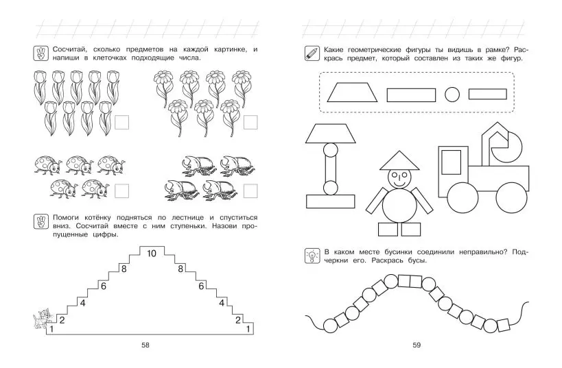 Выполняя интересные игровые задания, ребенок познакомится с числами первого десятка, понятиями «больше», «меньше», «равно», порядковым счетом, научится сравнивать предметы по количеству, писать цифры, решать примеры на сложение и вычитание с помощью числовой прямой. Знания, умения и навыки, которые дошкольник приобретет в результате занятий, позволят ему почувствовать уверенность в себе и в дальнейшем их успешно использовать. Кроме того, в пособии имеются методические рекомендации, которые подскажут, как правильно организовать занятие с ребенком.